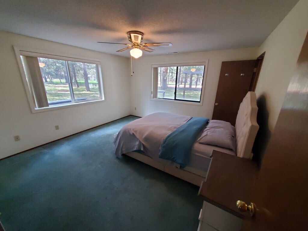 Master bedroom for rent in a 4 bedroom house. Located a short 5 minutes outside of the heart of small town Sisters in Central Oregon. Bedroom (13’x 13’) with huge closet (8’x3’) and ensuite private bath. Other housemates include a young twenties male who works in maintenance (full time housemate) and a couple in their 30s with a toddler who have a carpentry business (part time housemates), and an indoor/outdoor cat (part time housemate). Communal living area, kitchen, laundry and idyllic one acre yard irrigated lawn under 70+ mature conifers. Wrap around porch with patio seating and another sitting area in the yard under the trees. Driveway parking. The wooded neighborhood has a rural feel yet just 5 minutes to town. It is quiet and friendly with a small park and surrounded by Forest Service land. Looking for compatible housemates who are clean and organized and pay rent on time. No pets as the resident cat does not get along. Please note we ask all housemates to be fully vaccinated to protect the baby. Application process includes background and credit check. Tick most of the boxes but missing one or two? Ultimately we’re looking for the best fit for the household, so if it sounds like a good fit, please inquire to discuss. Rental terms: Rent $925/mo, utilities included (trash & recycling, heat, a/c, internet) Security deposit $500 Month to month Available March 1st - NOTE unable to show until 2/27. Inquire for additional details.