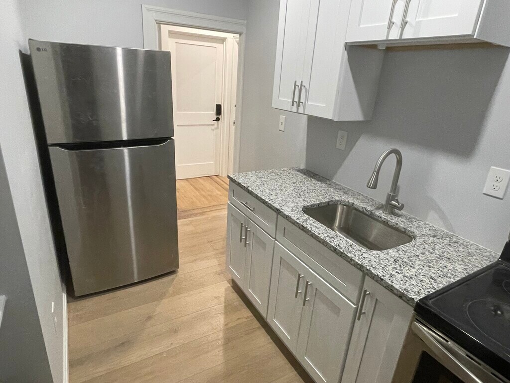 Spacious 1-bedroom apartment featuring a fully finished kitchen and bathroom. The bathroom includes tiled finishes, while the modern kitchen offers granite countertops, new cabinets, and brand-new appliances. Enjoy a large living room area, white oak hardwood flooring throughout, and generous closet space in the bedroom. The unit also includes central A/C and heat for year-round comfort, plus private entrances for added convenience and privacy.
