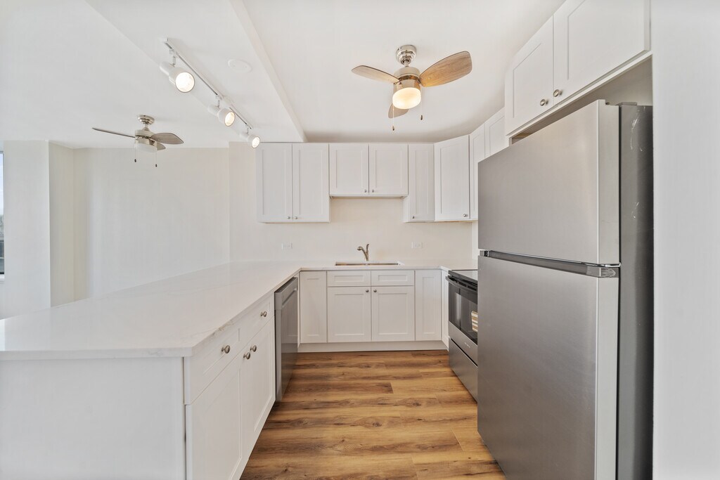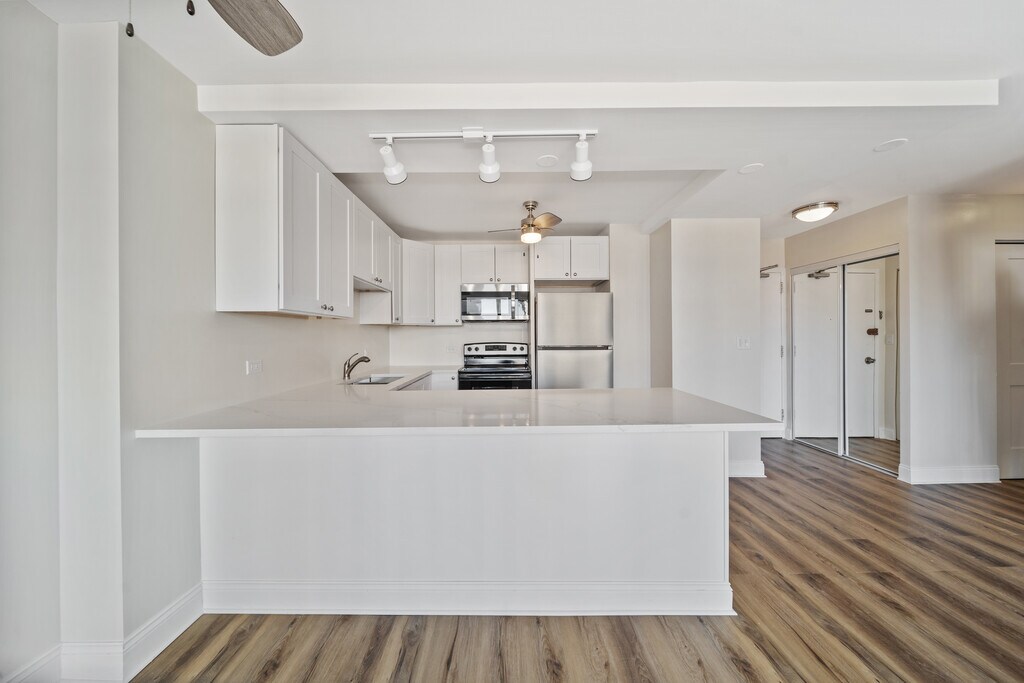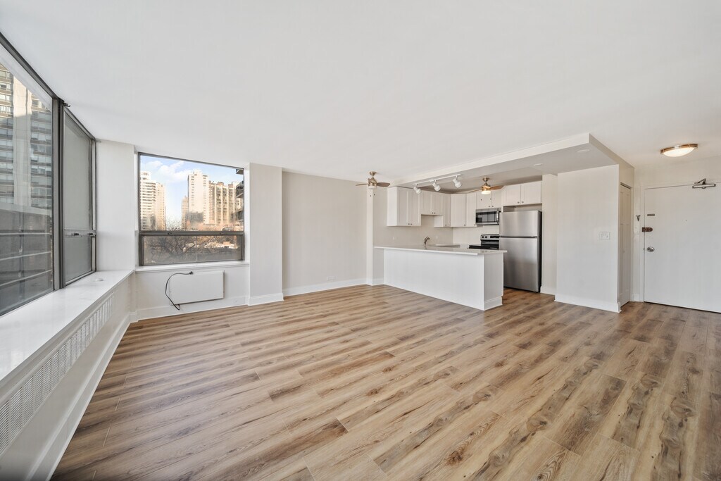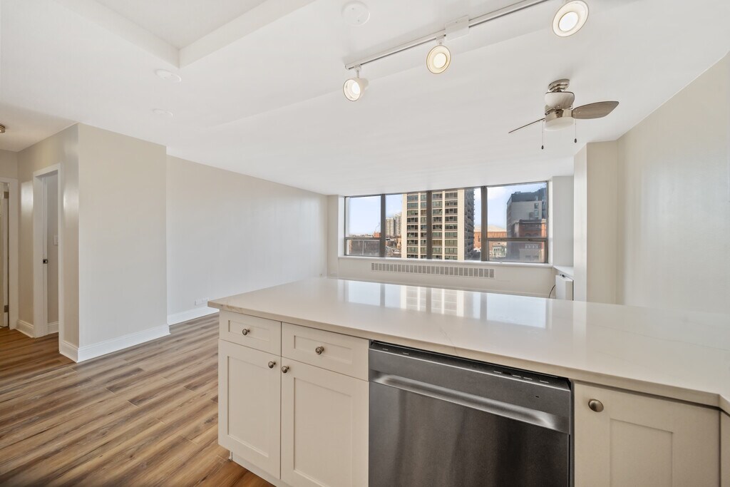 Available NOW: FEBRUARY'S RENT IS FREE Only one available in 60610, be the first to live in this spectacular, fully renovated home in the only building in the zip code with this level of amenities. The unit features a completely gutted kitchen with brand-new white cabinetry, a large quartz island with statement lighting, double-bowl sink, and all new stainless steel appliances including refrigerator, range, dishwasher, and microwave. The bathroom has been fully remodeled with porcelain tile, new vanity, and new toilet. New luxury vinyl flooring runs throughout, and the home offers multiple oversized closets with mirrored doors and custom shelving systems. Enjoy beautiful north-facing views overlooking the pool. This full-amenity building is unmatched in 60610, offering a 24-hour doorman, heated pools, tennis courts, fitness center, laundry room, bike storage, receiving room with dry cleaner and nail salon, and private storage lockers. Indoor garage parking available. No pets. No smoking.