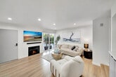 This stunning 2-bedroom, 2.5-bath end-unit offers the rare luxury of no neighbors above or below and was fully renovated in 2022 with high-end upgrades, including soundproof drywall, soft-closing kitchen cabinetry, stainless-steel appliances, and a built-in wine cooler. The light-filled living room features an elegant fireplace, built-in bar, and powder room, flowing seamlessly into the dining area and updated kitchen with quartz countertops and modern finishes. Upstairs, you’ll find two spacious primary suites, each with its own bathroom and custom-built closets for maximum comfort and privacy. The top level offers a dedicated laundry area with washer and dryer, plus access to your private rooftop deck — perfect for entertaining or enjoying serene treetop and mountain views. Additional highlights include two side-by-side parking spaces in a secured gated garage, central air and heat, ample storage, and a low HOA covering water, trash, insurance and common area maintenance. Located in prime Sherman Oaks, you are just minutes from Trader Joe’s, Gelson’s, the Sherman Oaks Galleria, Recreation Center, and easy freeway access (101 & 405). A perfect blend of modern living, privacy, and location; this is a must-see gem in one of the Valley’s most desirable communities.