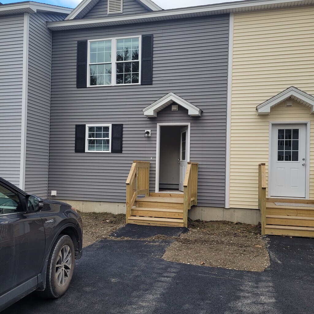 Nicely located newly built END UNIT in condo community. Units are 2 bedroom 2 full bath townhouse style condos that feature FULL BASEMENT for storage & sits on large 4 acre parcel. Great location is only a couple of minutes from downtown Hampden, schools and shopping plus easy access to Bangor/Brewer. This unit was built in 2023 and had great professional tenant Floor plan has open concept 1st floor with small entry, kitchen with stainless appliances and breakfast bar overlooking good size dining and living room area. Sliding door to deck or patio area for each unit to have outside space. There is a 3/4 bath on 1st floor (shower, toilet and sink) as well so a bathroom is available on each level. 2nd floor has full bath, large master with walkin closet plus 2nd closet and 2nd bedroom. The unfinished basement has w/d hookups and lots of room for storage or bonus space to use as exercise or hobby area. Units feature all composite floors except both baths and entry have ceramic tile. No carpet in any rooms just on stairway to 2nd floor so easy cleaning and good for folks with allergies. Heat, water, sewer, lawn and snow plowing included. Tenants pay just electric and internet. Prices start at $1895 for single, $1955 for double or $2025 for triple occupancy which is maximum. Units are pet friendly for both cats and dogs. This unit is available 1st week of November
