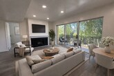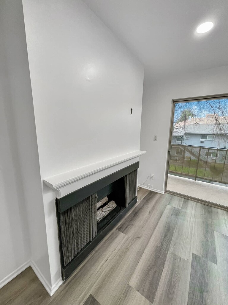 This beautifully renovated 2 bed | 2 bath condo in the heart of Sherman Oaks offers a serene retreat with an ideal split-bedroom layout for privacy and 2 parking spaces. Updates include new luxury vinyl plank floors, fresh paint throughout, new bathroom vanity mirrors, modern sliding closet doors, sleek lighting throughout, and a converted wet bar now featuring stylish storage and shelving. The bright, open-concept living space boasts recessed lighting, a cozy gas fireplace, in-unit washer & dryer, Nest system, and an expansive balcony surrounded by lush greenery. The kitchen shines with quartz countertops and new stainless steel appliances, while both spacious bedrooms enjoy ample closet space and soft natural light. The well-maintained building offers a heated pool, barbecue area, secure gated parking with two tandem spaces, and direct elevator access - all just moments from Ventura Blvd's shops and dining, Sherman Oaks Galleria, parks, and easy access to the 101 and 405 freeways. This private sanctuary delivers that perfect "home is where the heart is" feeling in the middle of it all!