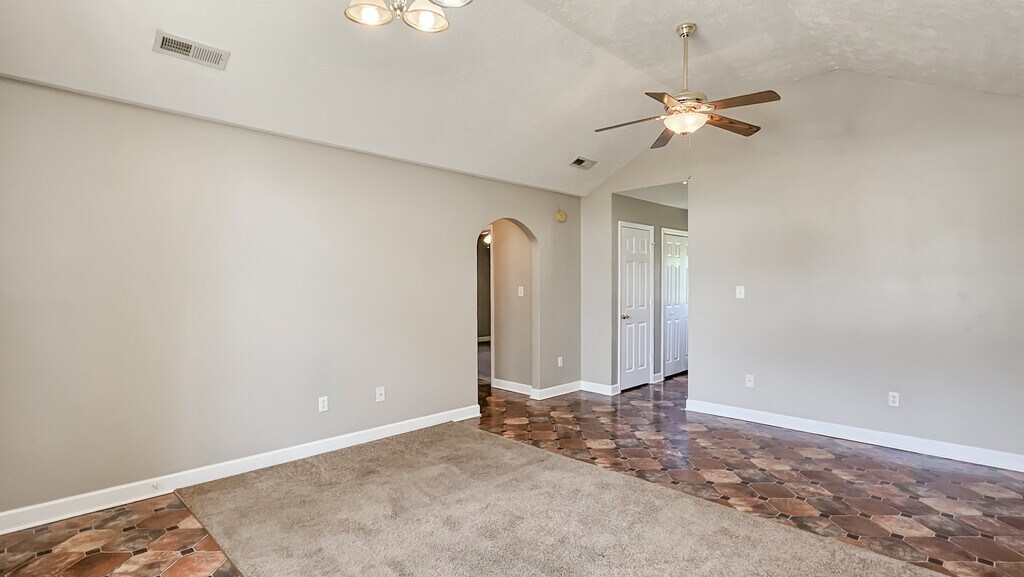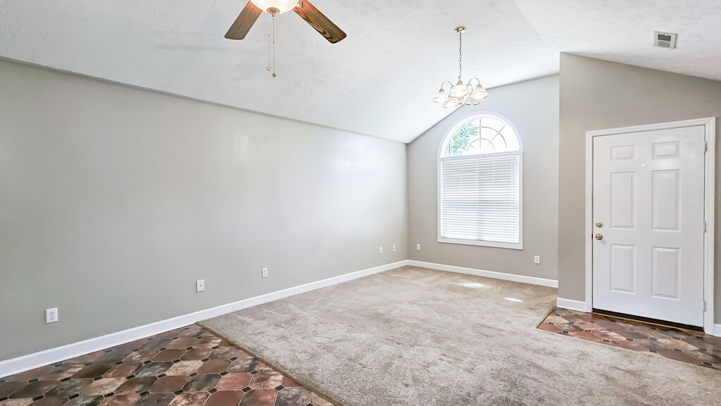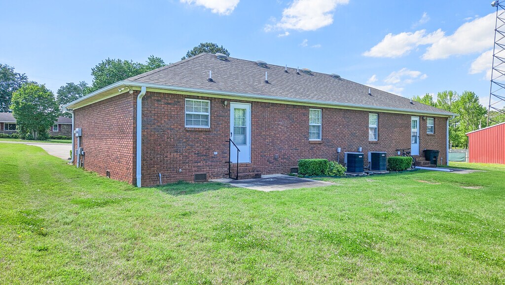 Enjoy the ease of single-level living in this charming duplex with only one shared wall. The home features its own private driveway with space for two cars, plus both front and back yards for outdoor living. Inside, you'll find two bedrooms with ceiling fans, one full bath, and convenient in-unit laundry connections. The living room and bedrooms are carpeted, while the kitchen, dining area, hallway, and bathroom have durable linoleum flooring. The utility room has recently installed Lexington Oak LVP flooring. Step out the back door to a 10' x 10' patio with beautiful views perfect for enjoying your morning coffee. Water and lawn care are included, and the location offers a short commute to Madison and Huntsville. No smoking, no pets.