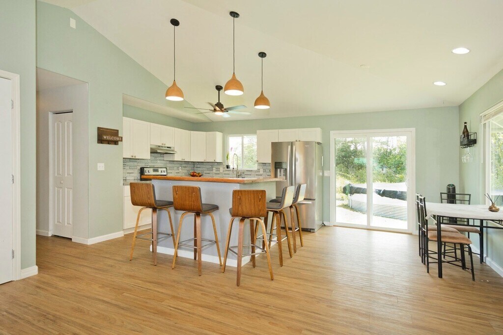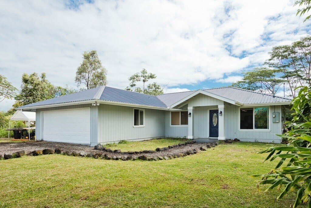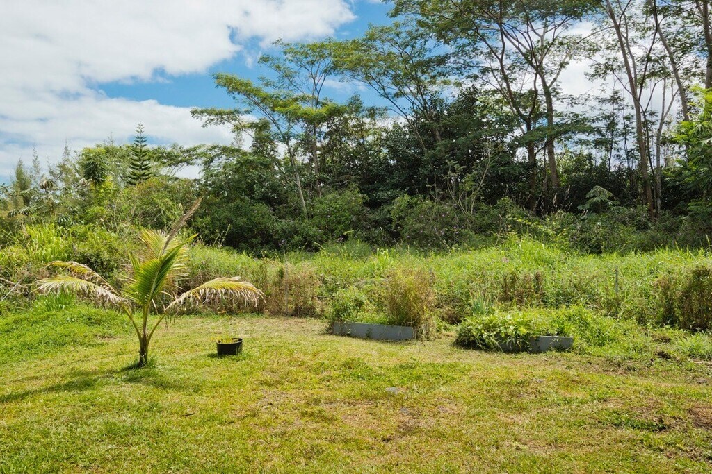 3 bed 2 bath! Catchment water, HELCO electric, ring security outfitted, about half acre fenced in lot, on a 1 acre property. Less than 10 minutes to Puna Kai Shopping center. Less than 30 minutes to Hilo Airport. Landscape services, security system, and wifi are all included. The house is on a paved road one avenue away from the main highway. Less than 10 minutes from the Keaau Transfer station. NO FURNITURE OR TV AVAILABLE (except for bar stools and shower curtain rods)