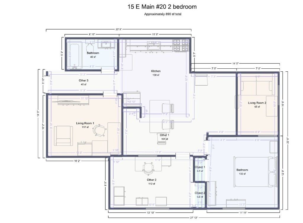 Apartment Unit: 1Apartment Model: 1 - 15 E Main St$9502 Bedroom, 1 Bath, 685 sq ftAvailable Now![]()