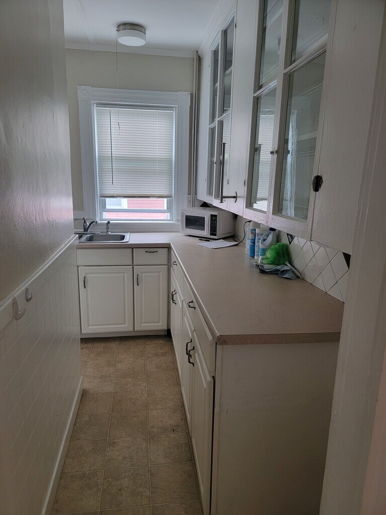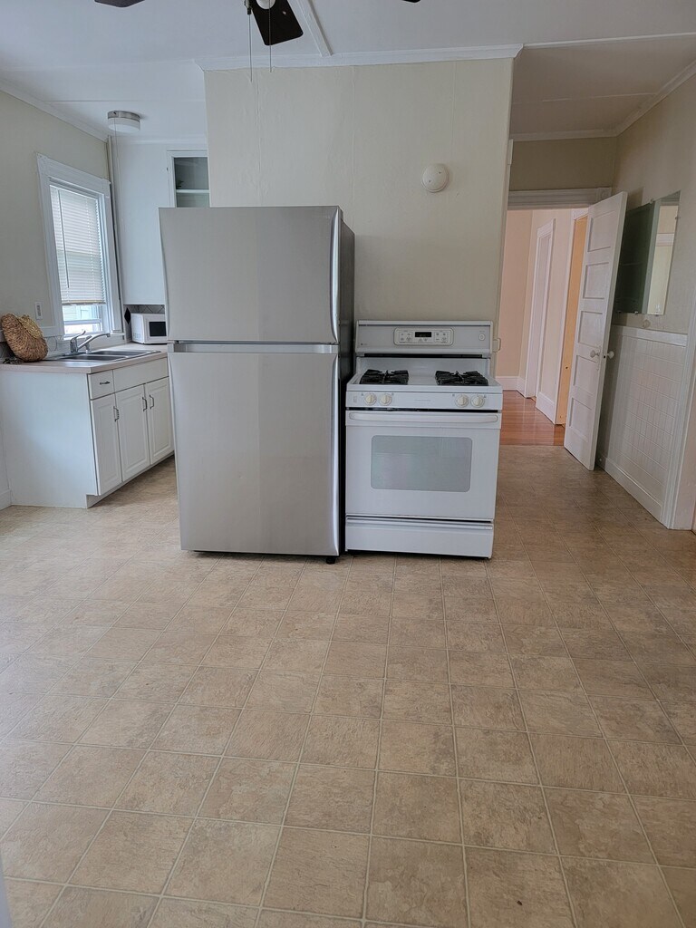 Oversized apartment with 3 bedrooms, eat in kitchen, living room, dining room, laundry room. Front and back porches, large yard, parking for two cars. Close to Attleboro downtown, the T, restaurents, grocery stores and shopping! Call Andrea if interested