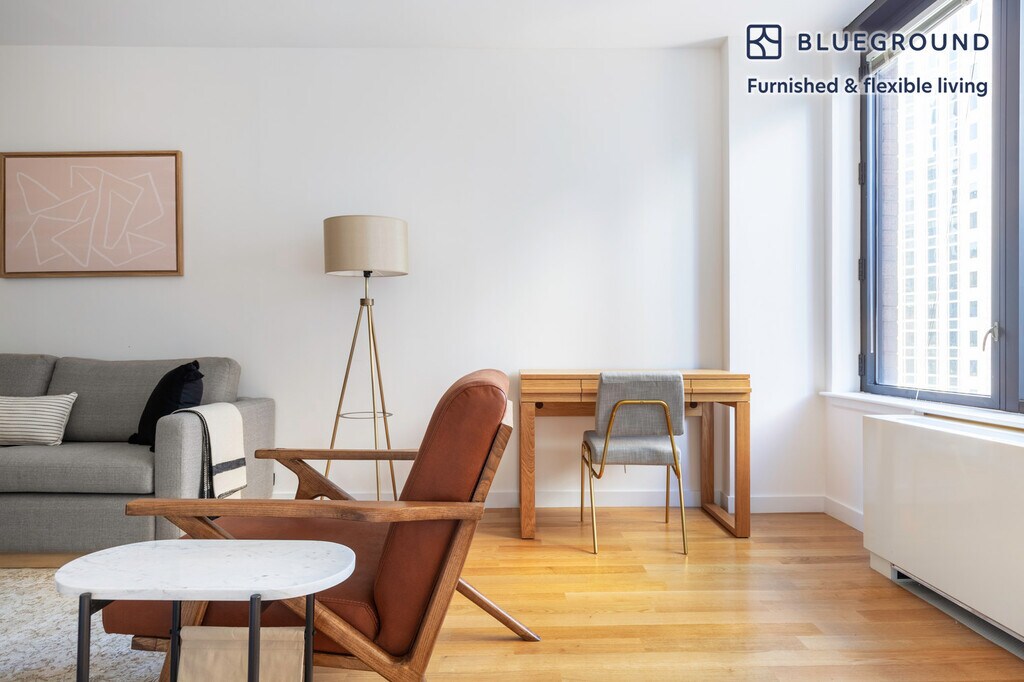 Feel at home wherever you choose to live with Blueground. You’ll love this comfortable Midtown East furnished two bedroom apartment with its modern decor, fully equipped kitchen, and roomy living room with great balcony views. Ideally located, you’re close to all the best that New York has to offer! (ID #NYC519) The advertised rate of $6,070/month is the lowest available price, based on a 2 month(s) and 29 day(s) stay with a move-in date of November 4, 2025. If you’re looking for a 1-year stay, the rate is $7,940/month. Rates vary depending on the duration of stay, season, and other parameters. For exact pricing and additional pricing components, please visit our website and enter your desired move-in and move-out dates. The rate is applicable when billed upfront; it can be higher if billed in multiple payments. Brokers are welcome to reach out. Were you looking for an unfurnished lease? Try Blueground instead and upgrade from unfurnished to furnished living: - Furnished at rates comparable to unfurnished - No setup or furniture costs - save thousands - Move-in ready - save time, just bring your suitcase Designed with you in mind As with any Blueground apartment, you’ll find a thoughtfully designed space complete with beautiful furniture and a fully equipped kitchen in this two bedroom property. And, thanks to our superior quality mattresses, luxury linens, and towels, you can relax knowing you’ll always feel comfortably at home. When you’re ready for some fun, you can take in the New York vibes or bring the entertainment to you with the premium wireless speaker or smart TV. Sleeping arrangements King Bed, 70.8in/180cm Double Bed, 55in/140cm Amenities Building amenities unique to this two bedroom apartment include an on-site: - Doorman - Dryer in building - Elevator - Swimming pool - Washing machine in building Arrival and ongoing support The entire apartment is yours to enjoy! Throughout your stay, you’ll have access to our Client Experience team through the Blueground App. You can schedule additional cleanings, submit maintenance requests, and view our neighborhood recommendations with just a few taps. We’ll share all details upon confirmation of your stay. Ideally Located This furnished apartment is located in Midtown East. This bustling neighborhood is home to NYC landmarks like the Empire State Building, the United Nations' headquarters, and Grand Central Station. Midtown East is also home to a thriving dining scene, with everything from humble food carts selling hotdogs to white-tablecloth restaurants with multiple Michelin stars. There are also many cultural attractions, including the Museum of Modern Art, the lovely Japan Society, the historic Morgan Library, and more. Midtown East is also home to some incredible shopping, from the international flagship stores along Fifth Avenue to Bloomingdale's, one of the city's best-loved department stores. Other things to note Building amenities may have an extra cost. This Blueground apartment has flexible lease options, allowing you to book it for one month, a year, or more. Brokes CYOF. We take great pride in ensuring every photo displayed is shot in our own units with our actual furnishings. That said, we regularly refresh our decor and furniture arrangement, which may differ from what’s pictured.