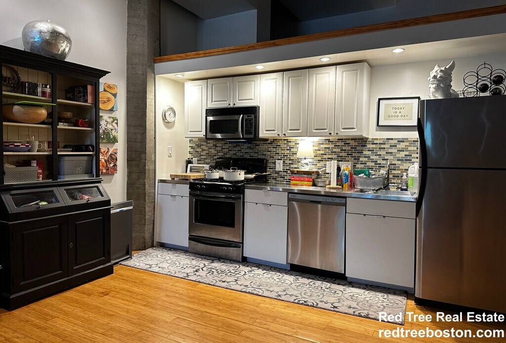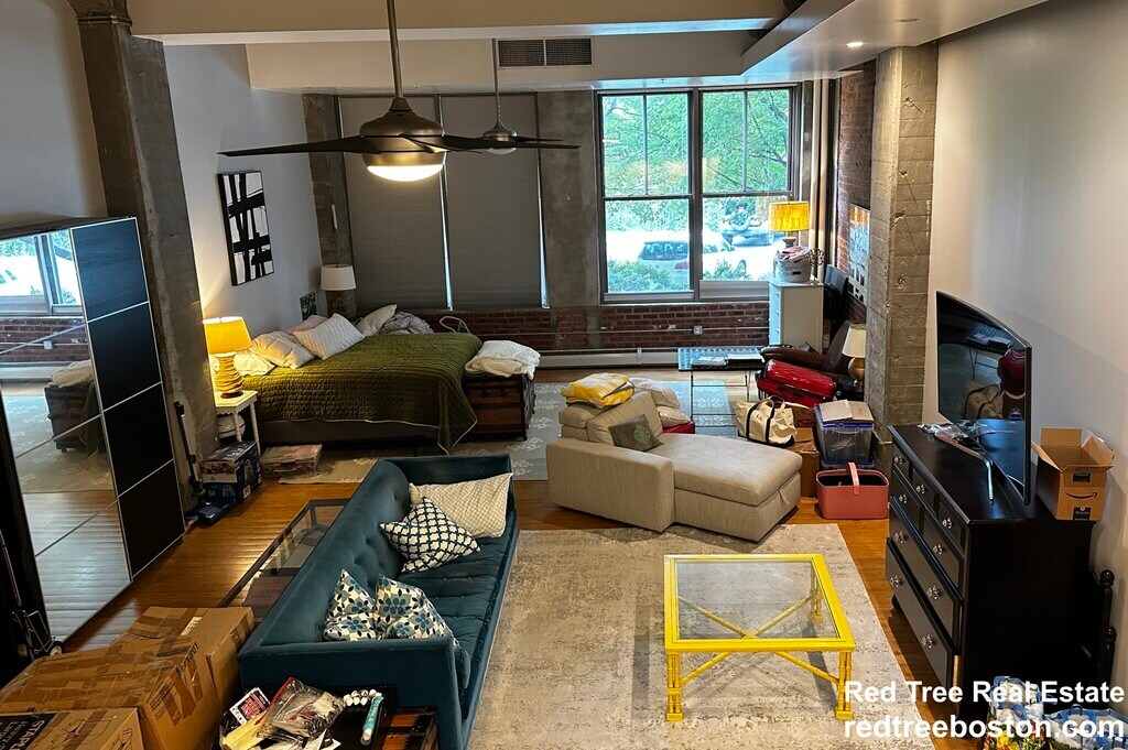 Discover East Boston living at its finest in this charming loft apartment in a converted factory building. Located on the 1st floor, this space features exposed brick and concrete walls that exude character. Extraordinarily large windows flood the open layout with tons of natural light. Central AC and convenient off-street parking space included. Enjoy the amazing city skyline views from the common roof deck and lounge area.