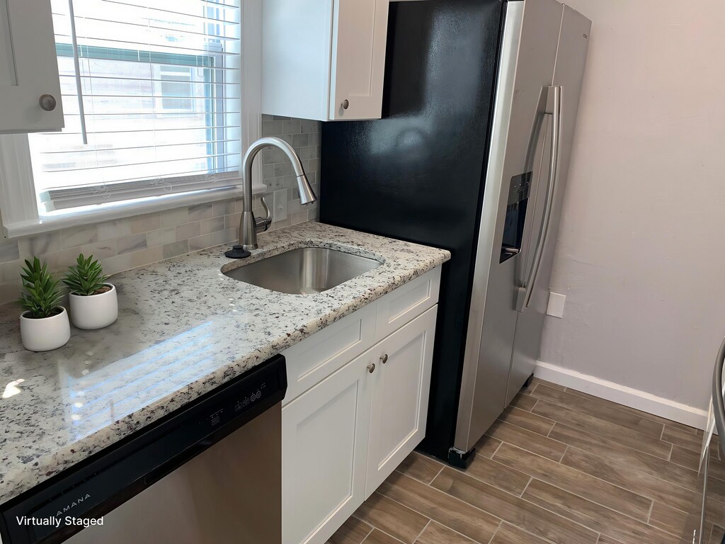 AVAILABLE NOW! EXCELLENT LOCATION. NO FLOOD ZONE!! 1 BLOCK FROM THE WATER! 5 MINUTES TO CLEARWATER BEACH AND DUNEDIN! Beautiful Completely Remodeled Apartment for rent in Key West Village! WALK TO THE NEW AMPHITHEATER AT COACHMAN PARK! )Can come furnished for a monthly fee as seen in picture for a small fee) Bright open plan with lots of windows! 1-Bed 1-Bath Large front porch Very efficient Tile flooring throughout Ceiling fans in living room and bedroom Kitchen: Stainless Steel Appliances Solid wood cabinets Granite Counters Bath: Tile shower/tub combo Full sized Washer/Dryer in unit Small well behaved fixed cat considered No smoking in the unit Must carry renters insurance Some pics maybe virtually staged Request application if interested!! Magnate Realty Chrisy Tellis Licensed Real Estate Broker 12 month Lease available 7-12 month+ Lease available