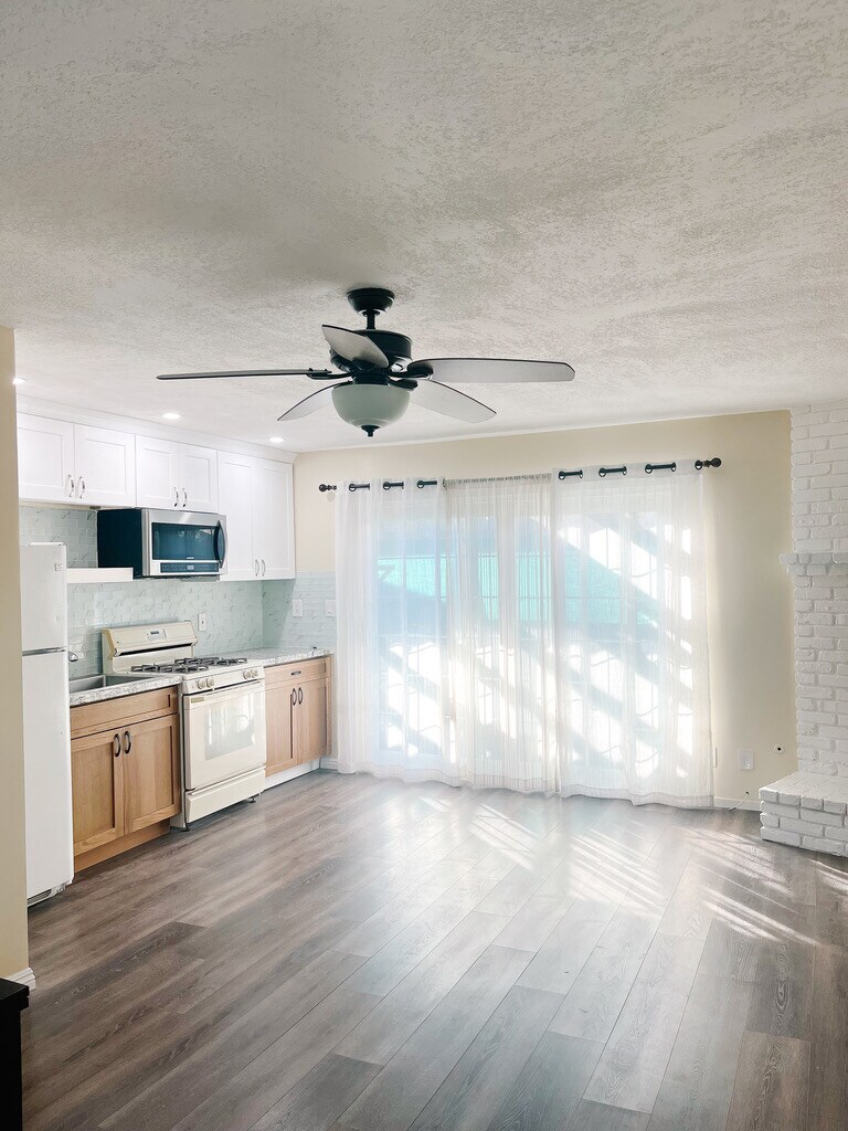 This studio is located in a quiet suburban neighborhood in Whittier bordering Orange County. It has its own private entry way with a patio area. Studio has a kitchen with a stove, refrigerator, microwave, large sink and plenty of cabinet space. It has a brand new modern bathroom, studio has a portable heater and a portable AC unit for the summer. There is street parking, no street cleaning restrictions. Washer and dryer located on patio. Choose from flexible lease terms of 6 months or 12 months to fit your needs. All utilities plus trash included. Owner lives on site. Dog or cat allowed under 20 lbs.