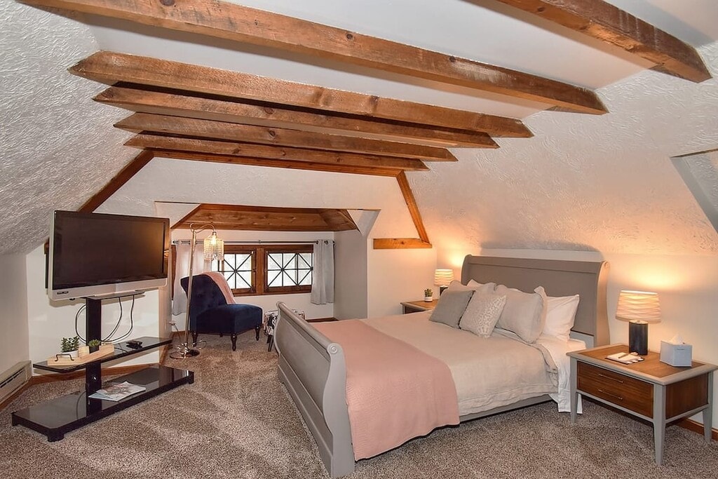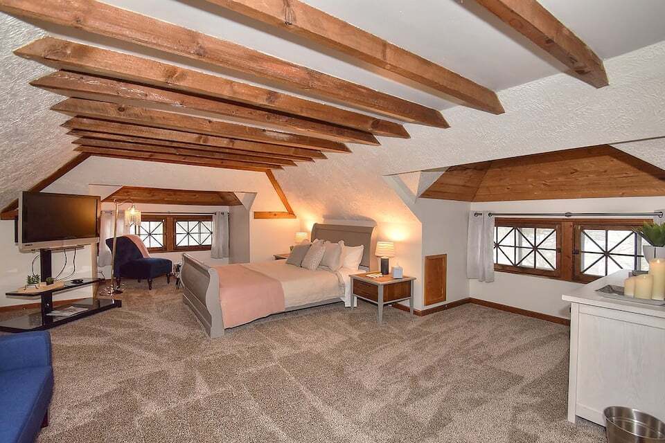 Loft unit: studio loft on 2nd and 3rd floor with a renovated bathroom and kitchen downstairs.