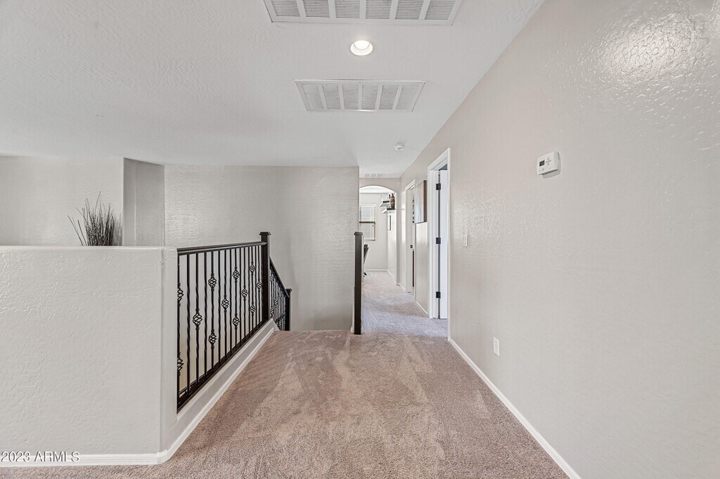 Huge master suite of total 400 ft. incl. private en suite bath with separate tub & shower, two walk-in closets and 8-piece brand-new premium espresso leather king bedroom set and your own new personal fridge. Almost like having an apartment except without the long-term lease or associated costs of extra fees, utilities and furniture! Located in a very safe upscale scenic neighborhood, the residence is hidden back away from main thoroughfares and nestled next to a long green belt, surrounded by multiple community parks and walking distance to large Park. Enjoy easy access to all parts of the Valley with a location just 2 miles to Loop 303 and I-10 and 6 miles to Loop 101. Lease of 6 months or longer may be signed at end of trial period at guaranteed standard rate Shorter leases available: 3-month add 10%, or month-to-month add 15% Room rate is for one adult. Couples may be considered for an additional 50% surcharge. No free-roaming pets currently being considered. Smoking outside on patio only. Other general house rules will be disclosed upon interview and at renter's request. First month rent + security deposit required upon move-in (deposit will hold until room is available, or up to 2 weeks max. if available but you need more time; to be refunded in full upon departure if no loss, damage or failure to pay rent All prospective applicants with mutual interest upon interview must pay for and pass a standard background and credit check
