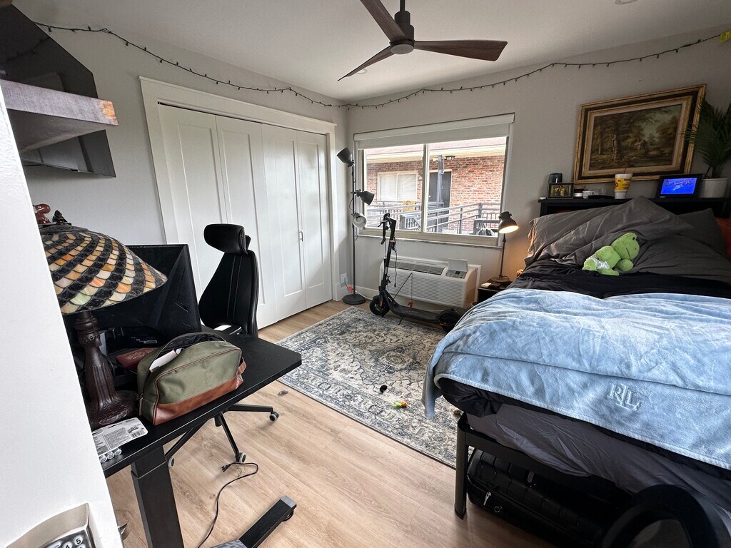 Entire condo renovated in 2025: • Quartz countertops, updated cabinetry, stainless-steel appliances • New LVP flooring in living areas + ceramic tile in the bathrooms • In-Unit Laundry: Equipped with a new washer and dryer • Four large bedrooms - each comes with a bed, desk, night stand, storage drawers closet organizer and PTAC unit (climate control) • In the FORT: A 5-minute walk to campus • Trash and Water included: Tenant pays for 1/4 of Electric/Internet/HOA/Pest control • Swimming Pool and grilling area with covered gazebo • Free parking by permit in on-site lot (one car per bedroom) • Unit is professionally cleaned every month at no additional cost to tenant Unit has 2 tenants already (both male) - we will consider up to 2 new tenants for this space.