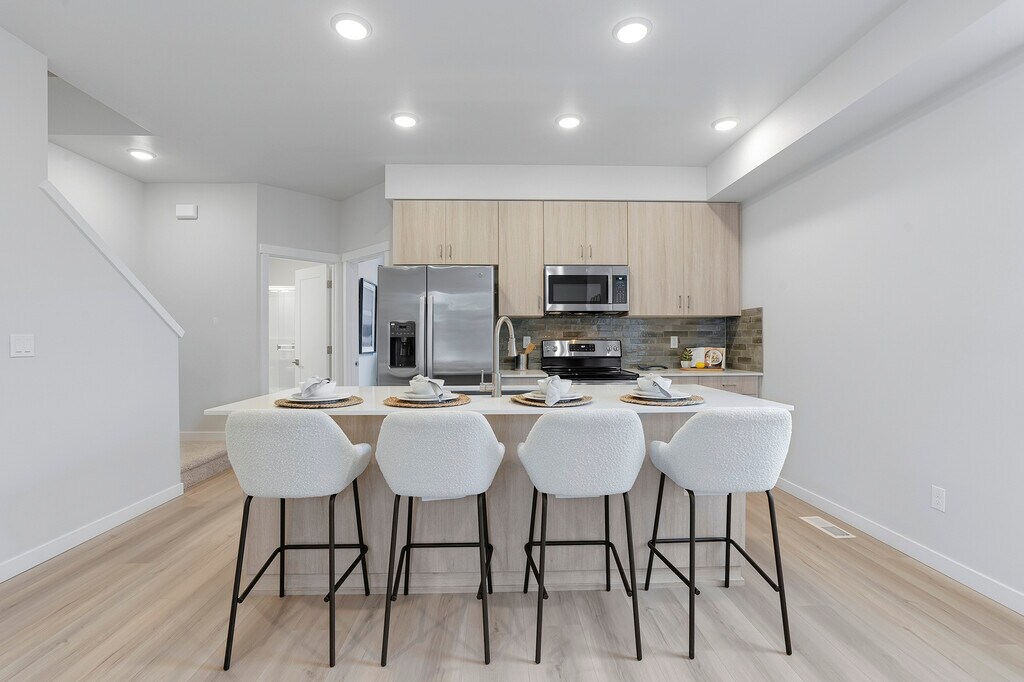 Amazing opportunity to be the first to live in these brand new townhome style homes, conveniently located at 150/Division. GATED community with bbq area and small play area. Each townhouse has custom features including gas fireplace, LVP and plush carpeting in bedrooms. Second level has Great room style living space with large island with room for seating, living room with gas fireplace and kitchen with all appliances included. Bedroom and full bath. Upper level has two bedrooms and two additional baths, Utility closet with washer/dryer hookups, appliances can be included with small additional monthly charge. Main level has garage that has access to back patio - great for entertaining! Each unit has driveway for additional parking space! A pet is negotiable, call for details and your private showing.
