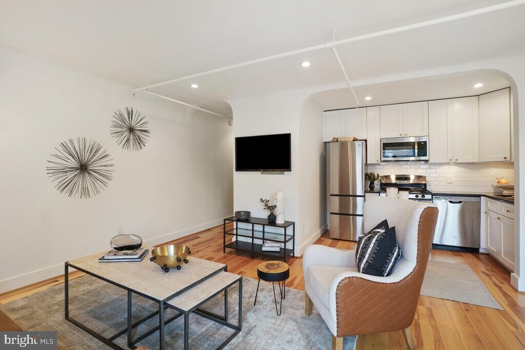 Top-floor one bed, one bath unit on a quiet street in Columbia Heights in between 14th Street NW and 16th Street NW. The unit has ample storage with three in-unit closets, in-unit washer and dryer, stainless steel appliances, recessed lighting, and a built-in bluetooth speaker system. The unit is located in a small condominium building with secure access and bike storage, and the unit is secured with a smart lock. The unit does not come with parking, but parking can be rented nearby and the address is zoned for street parking. The unit is on the Mount Pleasant/Columbia Heights border, and is less than a 10-minute walk away from the following: the Columbia Heights Metro, the Columbia Heights Giant, Target, New York Sports Club, the Powell Tennis Courts, the Columbia Heights farmer's market, the Mount Pleasant farmer's market, Mount Pleasant restaurants like La Tejana and Joia Burger, and Rock Creek Park. Pets are allowed, maximum one dog and maximum two cats.