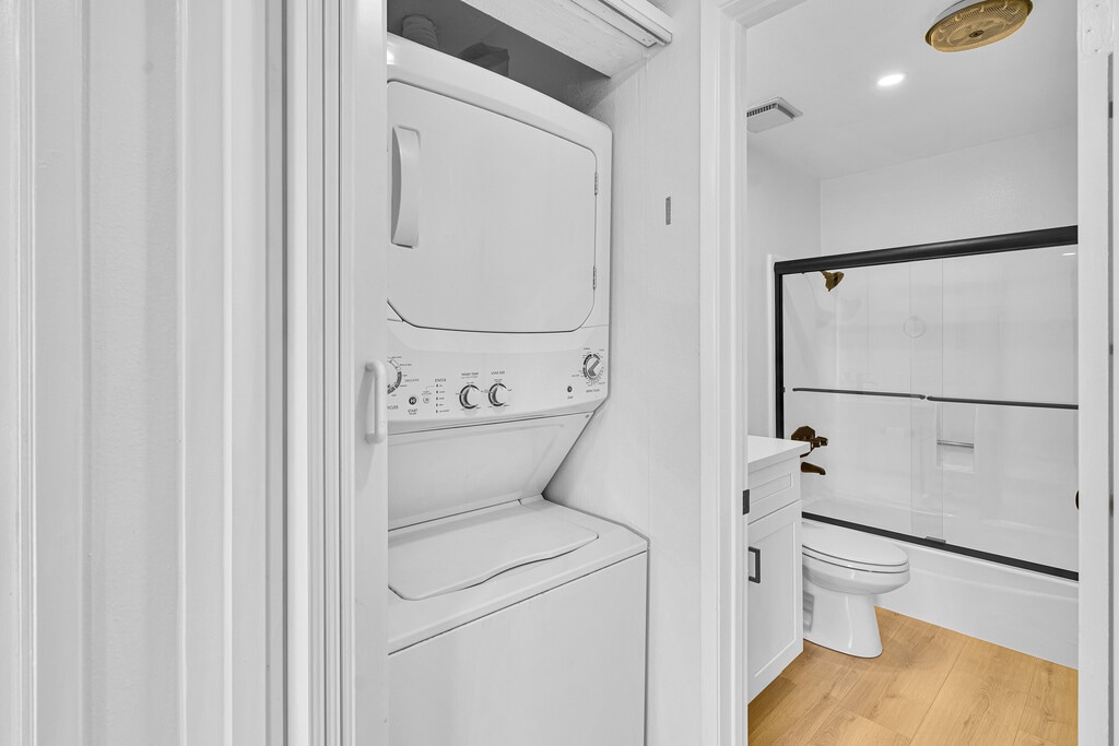 This is a fully upgraded, top-floor condo featuring 2 bedrooms and 1.5 bathrooms. Key Interior Features The unit boasts a modern kitchen with soft-closing cabinets, a stove/oven, microwave, and dishwasher. The living room has a vaulted ceiling, a fireplace, and opens to a large balcony. The condo includes an in-unit washer and dryer, a new Nest thermostat, central air/heat, and recessed lighting. The entire unit has new laminate flooring with sound-proof subflooring. Both bathrooms have been updated with new vanities and quartz countertops. Community Amenities The complex is well-maintained and offers a heated pool, jacuzzi, and BBQ grills for residents. It features landscaped grounds and gated parking. Parking & Utilities This unit comes with two assigned, side-by-side carport parking spaces, and guest parking is also available. The HOA fee covers water and basic cable TV. NO PETS.