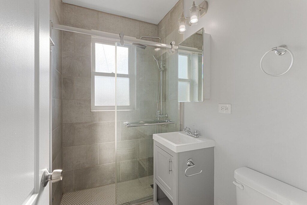 You'll LOVE the Spa-Like Shower in this Modern Design 1 Bedroom Apartment in Rogers Park! —Sleek Kitchen Cabinets —Contemporary Quartz Countertops with Deep Undermount Sink —Stainless Steel Appliances includes Dishwasher —Eat-In Kitchen Counter —Spacious Living Area —Designer Plank Flooring —Modern Glass enclosed Shower with Fixed and Handheld Showerheads in Polished Chrome —Ceiling Fans with LED Lighting —Saflok Security Key Entry —Heat/Water/Cooking Gas Included —Pets Welcome (No Pet Rent)