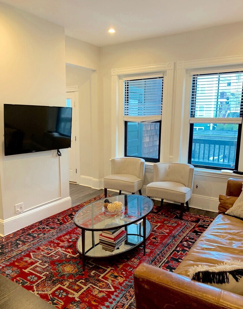 Features: A/C, Alarm, Bay Windows, Ceiling Fan, Central AC, Central Air, Completely Renovated, Complimentary Laundry, Deck, Dining Room, Dishwasher, Disposal, Eat-in Kitchen, Gas Heat, Hardwood Floors, High Ceilings, Laundry in Unit, Living Room, MBTA Access, Microwave, Modern Bath, Modern Kitchen, Near Public Transportation, New/Renovated Bath, New/Renovated Kitchen, New Appliances, Newly Renovated, Private Deck, Refrigerator, Security System, Stainless Steel Appliance(s).