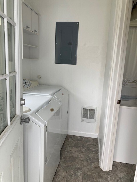 Super cute 1950s rambler close to everything is now available to rent. It comes non furnished or partially furnished and is move-in ready. It has an open kitchen and dining area, large living room with cozy gas freestanding stove, large laundry room with updated full bath and 3/4 bath and two large bedrooms. The house has a fenced-in back yard and is pet friendly and it also comes with a 10'x20' storage shed! The hospital is walking distance and the park is even a shorter walk. This is a quiet and friendly "dog walking" style neighborhood with long standing established neighbors. Houses in this neighborhood sell for well over 470k. As mentioned, this house is pet and toddler friendly with a completely fenced-in back yard.