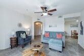 Enjoy Mountain View’s at this single level all ages townhome in Green Valley. One master suite with shower with queen bed, desk, large dresser and walk in closet. Second bedroom has two twin beds, desk and smaller dresser. The full kitchen has plates, silverware, cookware, Ninja single cup or full pot coffee maker and air fryer toaster oven. There is an indoor dining room with table and screened in porch (Arizona Room) with table for seating indoors or partial outdoor. The community pool is not far and gated. There is one covered parking spot included, plus plenty of open parking not covered. Minutes to Tucson, Tubac, shopping and the border to Nogales, Mexico. Fully furnished and equipped. All utilities included with cap. AC and ceiling fans in every room.