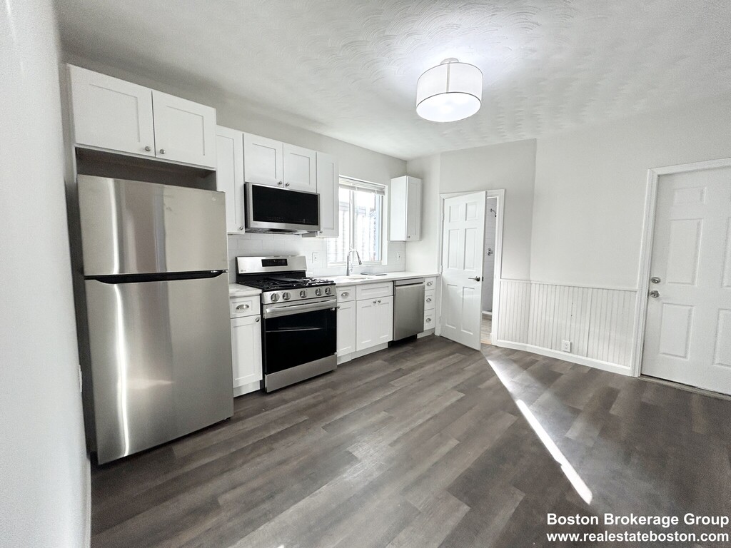 Four-bedroom, two-bath unit in Dorchester with gas heating and water included. The building offers laundry and outdoor parking for rent at $250/month, with up to nine spaces available. Cats and small dogs are welcome. Conveniently located near UMass Boston and Northeastern, with easy access to public transit.