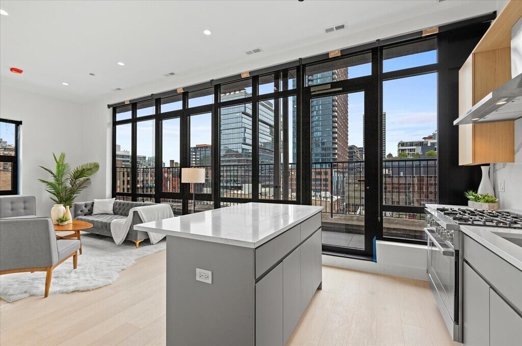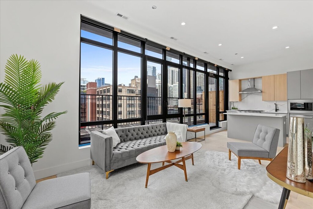AVAILABLE NOW: Welcome to Paper Box Lofts, River North's newest boutique rental residences nestled in the heart of the city. Available immediately, this stunning and highly private north-facing corner 1-bedroom penthouse is a true gem. As you enter, you'll be greeted by beautiful white oak flooring that leads you to the expansive floor-to-ceiling windows, filling the space with natural light and offering unobstructed views of downtown Chicago. The modern kitchen boasts top-of-the-line Bosch appliances and sleek quartz countertops, with a two-seat island that separates the living and kitchen areas. Step outside to your own private deck, ideal for relaxing or entertaining while enjoying the views. Additional features include Grohe fixtures, custom window treatments, built-in closets, contemporary wood cabinetry, track lighting, in-unit washer and dryer, and central A/C & heat. Building amenities include an elevator, fob access system, mailroom, workout room, bike storage, and common roof deck with grills and patio furniture. Pet friendly building with pet fee. Amenity/utility package and one-time non-refundable move-in fee based on bedroom size. Call Stephen to schedule a tour today! Ref # 12 359186 Stephen John Suominen Broker Compass