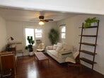 Updated California Bungalow in the heart of Sunset Junction in Silver Lake. This is a middle house of three homes on one lot. Inviting front porch, large living room,open dining area with built ins, hardwood floors, newer kitchen, washer and dryer inside. Small private patio and side yard. One car detached garage included. Stroll down to Farmers' Market, local coffee bars and restaurants.