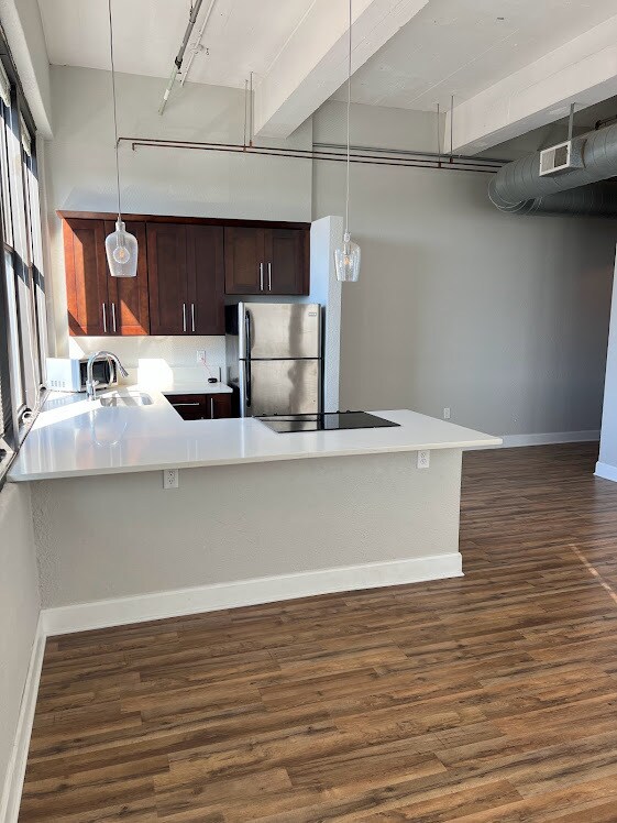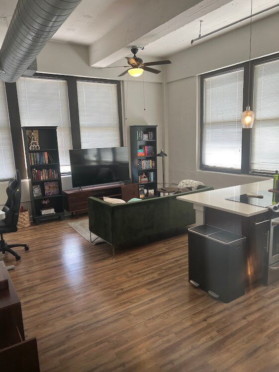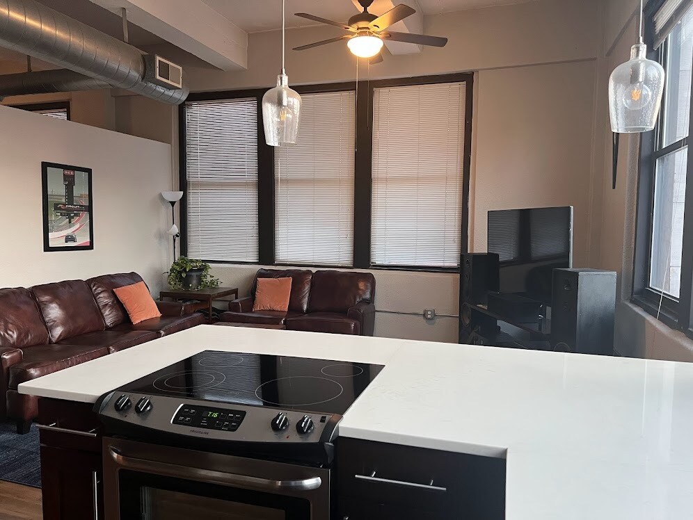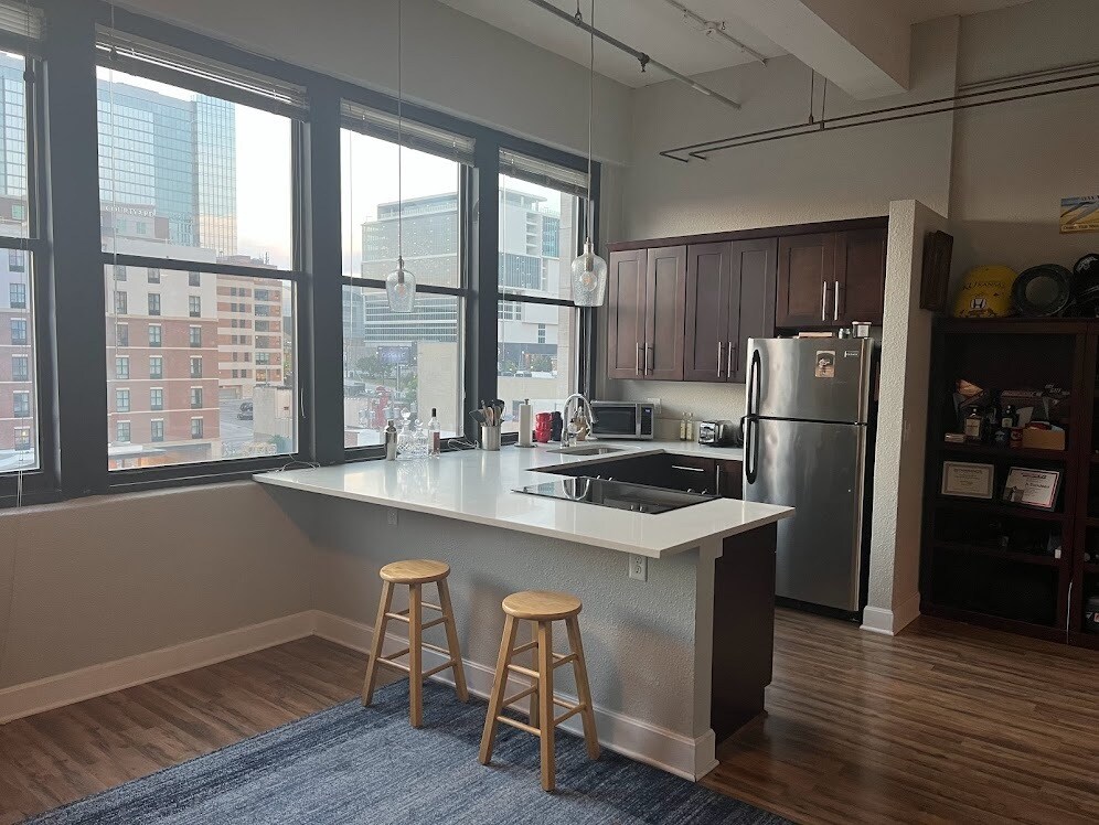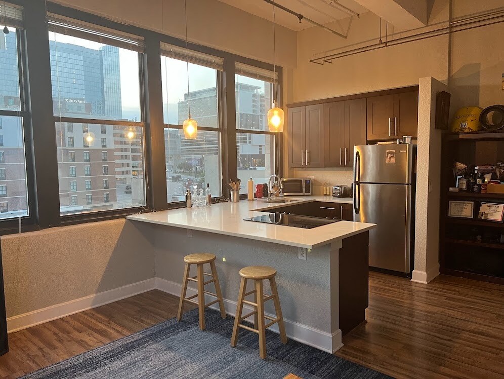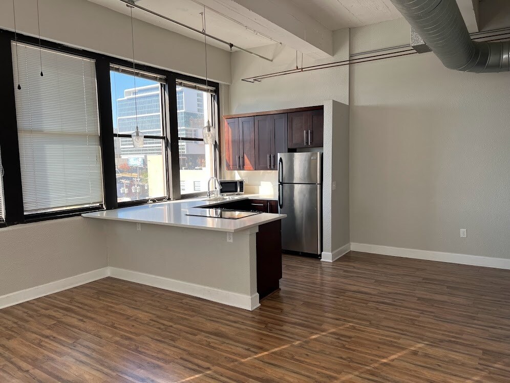 You'll be blown away by the location of this 5th floor unit in one of KC's most historic buildings. The Campbell Lofts building is literally steps away from the downtown P&L district which includes the T-Mobile Center and amazing dining options. Feel the energy of the Crossroads District, Crown Center, Union Station, and the River Market simply by hoping on the Street Car just ONE block away. The Unit is a 900 square foot space with one bedroom/one bathroom. EVERYTHING has been updated! New wood flooring, kitchen cabinets, quartz counter tops, and appliances! Including full size washer and dryer! G**gle Fiber has been installed giving you FREE Internet! One FREE parking space is also included! The views from this corner unit will blow away your visitors! This unit will not be available long!! Come see it today!