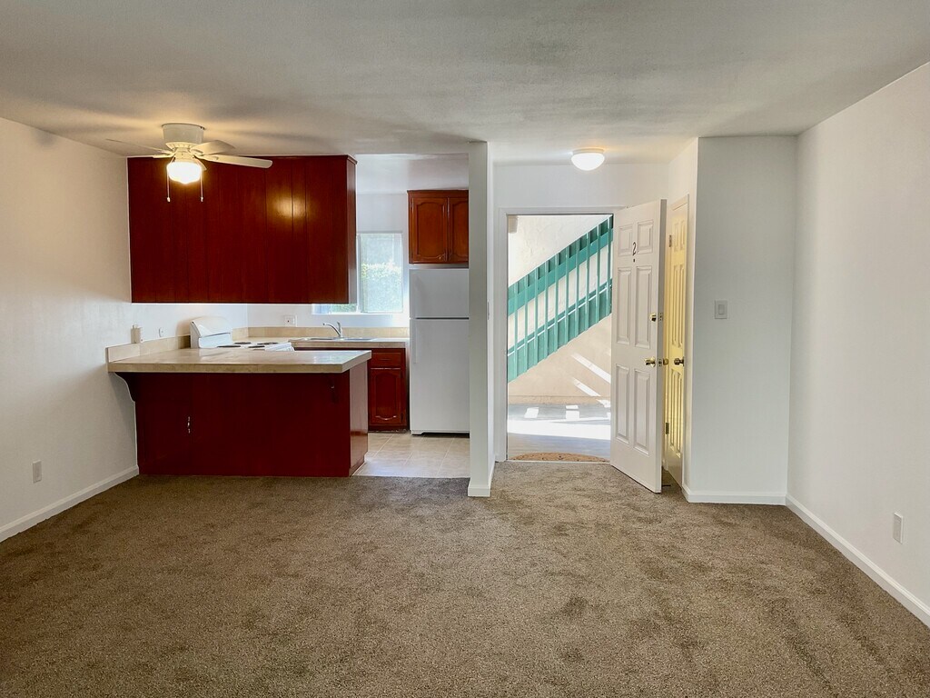LARGE, SPACIOUS renovated 2-BEDROOM/2-BATHROOM apartment in South Escondido, just north of Rancho Bernardo, near North County Mall: * VERY NICE LOCATION on a peaceful, tree-lined residential street * Across from new single family homes * Walk to groceries, shopping, restaurants, schools, etc. * EXCELLENT SCHOOLS - Juniper Elementary, Bear Valley Middle, and San Pasqual High * Easy access to I-15 and 78 freeways * RENOVATED with NEW CARPET, newly painted, and updated patio * Quiet, bright, clean, and beautifully maintained * Updated all-electric FULLY EQUIPPED kitchen and newly RENOVATED bathrooms * Large living room, dining area, A/C, and lots of closet space * Private patio with sliding doors from living room and master bedroom suite * On-site 24-hour access to WASHER-DRYER facilities * Covered CARPORT WITH STORAGE * Weekly gardener service * Surveillance cameras in common areas * Cable TV/Internet ready * NO SMOKING, NO PETS * Clean records and good credit required * Water and trash utilities included * 11-month lease * Security Deposit only $1,000 * Rent $2,495 per month