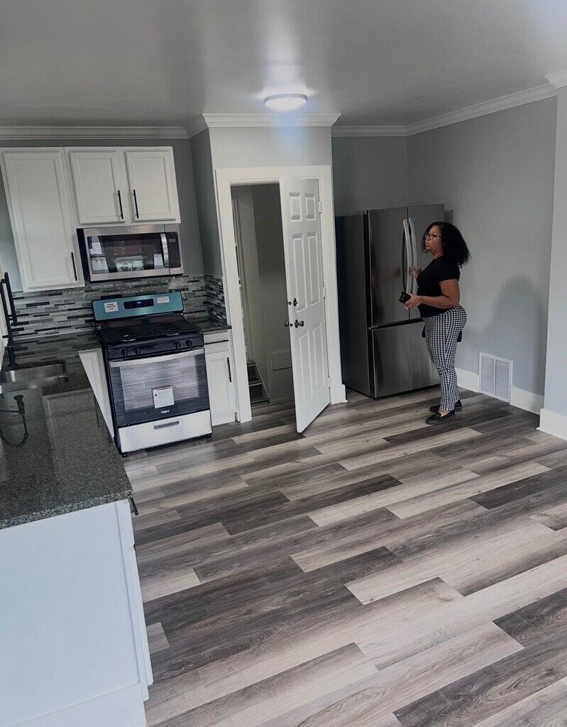 Beautiful, completely remodeled, spacious duplex two bedroom , one and a half bathroom apartment . Open living room and kitchen brand, new refrigerator, oven, and microwave, laundry room, and exercise area in shared basement. (section 8 welcomed)