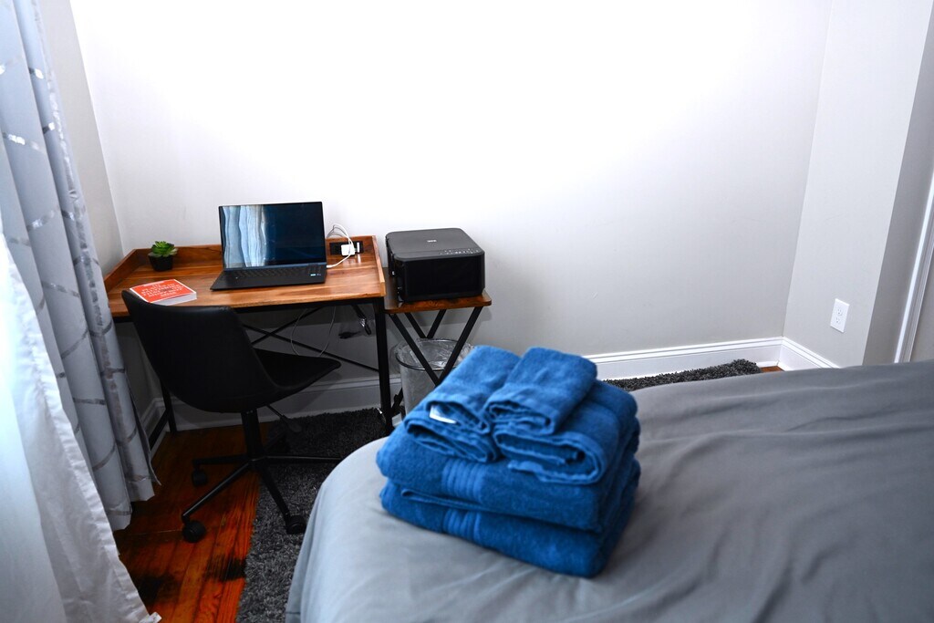 A cozy and modern 750 sq ft. 1BR Oasis with Queen-sized bed features a fully stocked apartment located in the heart of Baltimore. It comfortably sleeps 1-3 people and is centrally located in Baltimore, just 5 mins to major hot spots. Enjoy a kitchen, dining area, access to free washer and dryer, free street parking, free 5G WiFi, and easy access to all attractions. It's 5 - 15 mins away from major hospitals like John Hopkins Hospital & UMMC (15 mins), MedStar Union (5 mins), MedStar Good Samaritan (8 mins) and GBMC (12 mins). Near major Colleges and Universities as well: JHU (8 mins), Loyola U (8 mins), Notre Dame (10 mins), Morgan State U (5 mins), University of Baltimore (10 mins) and Towson U (15 mins). Highlights: ? Dog Friendly ? Contactless self-check-in ? Free Street Parking ? Professionally cleaned ? Virtual concierge via text, email, or phone ? All utilities included ? Coffee, fresh towels, and bathroom essentials provided ? Fast, reliable, and always free WiFi / True 5G WiFi Connection ? Roku Smart TV in HD ? On premise Laundry Area ? Designated workspace