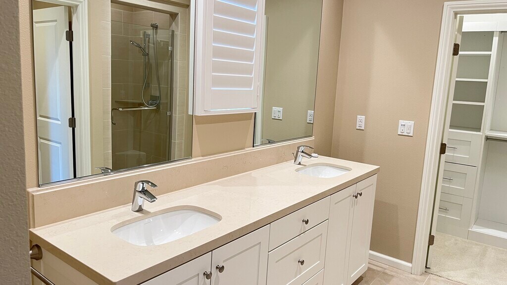 2 bedroom, 2 bathroom end unit condo in desirable Eastwood Village. A very well-maintained home at the inner location with many upgrades in the kitchen and bathrooms. This home has all bedrooms, living room and kitchen on the same floor. Stainless steel appliances, granite countertops, full backsplash, and white cabinet space in the Kitchen. A separate office area has a built-in cabinet with shelving and a connected desk. The Master Bedroom features a walk-in closet with build in organizer, dual vanity, and a walk-in shower. An oversized sliding door in the living room opens to the spacious patio facing Bishop Landing. Side-by-side two car garage with direct access to the house. EV charger in the garage. Resort like community. Amenities include park, pool, spas, BBQ area, playground and sports courts. Washer, dryer, refrigerator and water softener are also included. Minutes away from Zion Market, H Mart, Woodbury Town Center, 99 Ranch Market, Irvine Spectrum Shopping Center and Costco. Close to freeway entrances (5, 133, 241).