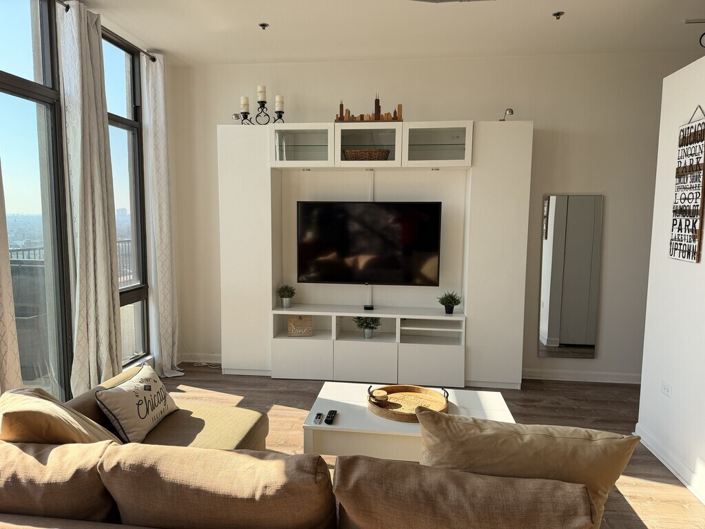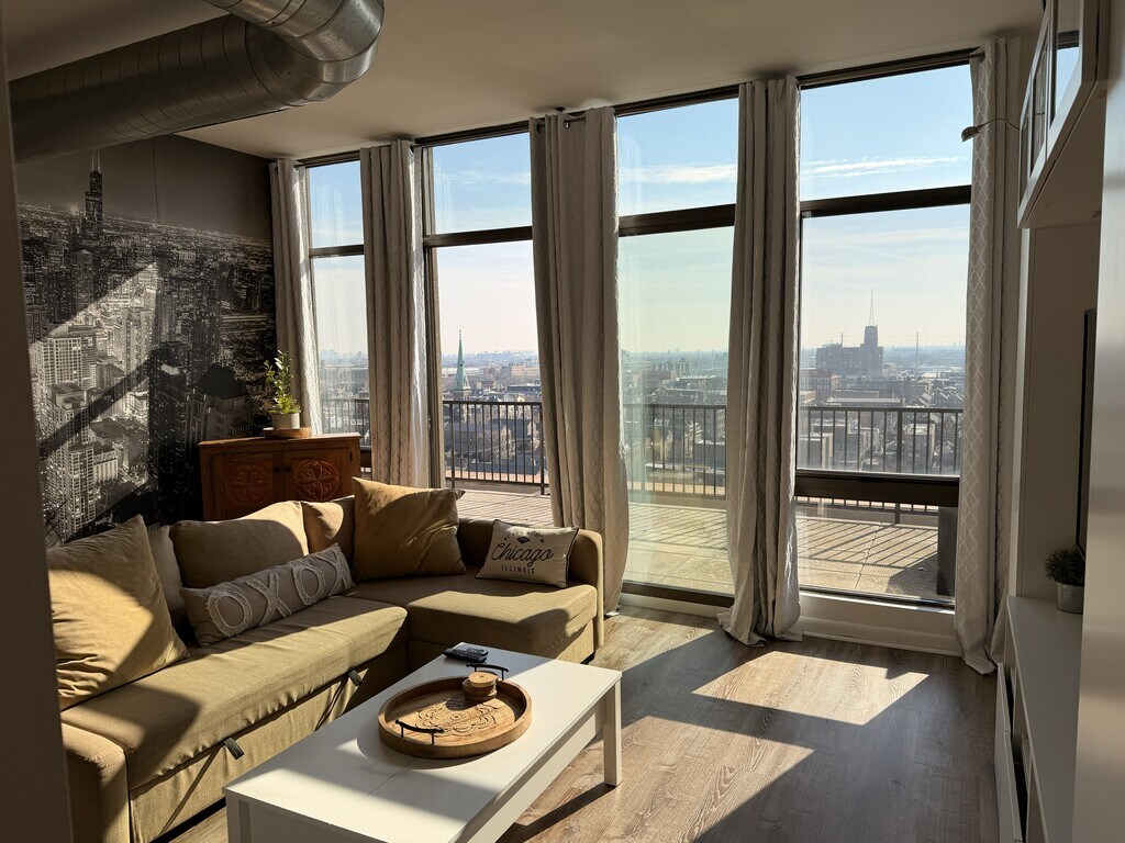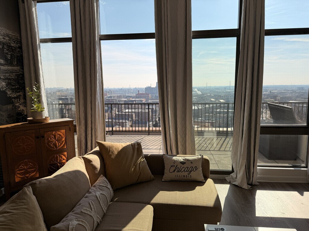 Welcome to your fully furnished urban sanctuary at 1550 S. Blue Island Ave in Chicago’s vibrant University Village / Little Italy neighborhood; a true city living experience just minutes from downtown. This 1 bedroom, 1 bathroom Penthouse condo features: - 12’ × 29’ private balcony with panoramic south-side city views (fireworks visible from Guaranteed Rate Field on White Sox home runs) - Fully furnished with a 65-inch living room TV, bedroom TV, Chicago-themed decor, and new linens, pillows, and comforter - Walk-in closet for plenty of storage - Spacious bathroom with a deep soaking tub - Fully equipped kitchen with utensils, cookware, and cleaning supplies - Bath towels provided — move-in ready Included & Building Features: - Rent includes all utilities except electricity - Wi-Fi Internet - One climate-controlled indoor parking space steps from the elevator - Key-fob entry - Evening/weekend door person, and buzz-in guest access - Quiet, low-traffic top floor - Controlled access building with elevator -Exercise Room - Party room -Bike storage room Location Highlights: -Walking distance to highly sought out Pilsen area local restaurants and sports bars. Easy access to: - Downtown Chicago & West Loop dining/nightlife - Roosevelt & Ashland corridors with retail and services - Guaranteed Rate Field and nightlife in Pilsen - University of Illinois Chicago (UIC) medical and academic campuses - CTA Pink Line & bus routes nearby for fast transit to the Loop - Quick access to I-90/I-94 and I-55 for expressway convenience Sorry no pets allowed