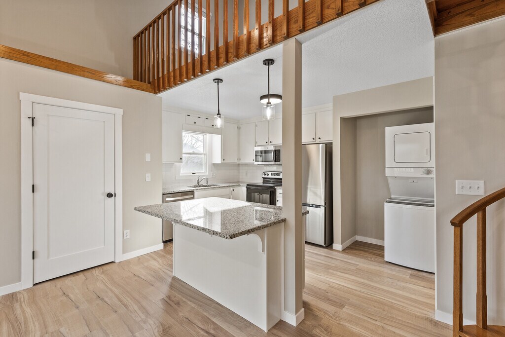 Main Level Living 2 bedroom, 1 bath in the heart of Hudson. Newly updated condo ready for you to move in! Featuring a modern eat-in kitchen with new cabinets, countertops and appliances. Freshly painted throughout, with new flooring and a remodeled full bath. Spacious rooms, ample storage, and in-unit laundry for your convenience. No maintenance- as snow removal and yard upkeep is done for you. Includes a garage, garage door opener, and a designated parking space. Email or call for application and showing requests. NO PETS, NO SMOKING.