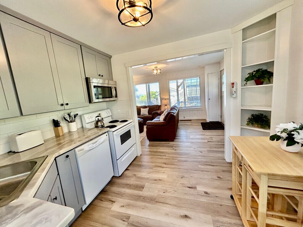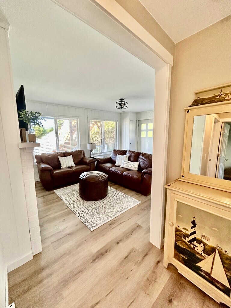 This first floor 2 bed 1 bath true gem offers a full kitchen, electric stovetop/oven, refrigerator, micro hood, and dishwasher. Brand new solid wood, soft close kitchen cabinets, including a spice cabinet! Custom epoxy kitchen countertops, subway tile backsplash. Brand new shower tub surround. On site laundry. This well sought after location is a little slice of heaven on earth. Just one very short block to easy beach access and known to be the best neighborhood in Lincoln city! This adorable home has just been completely renovated. You would be one of the firsts to enjoy falling asleep to the sound of the ocean in this super clean well cared for property. The new queen and twin mattresses are so comfortable! Looking for honest, clean tenants to love and care for this home short term or long-term. All utilities are included! Samsung smart tv with extensive channel lineup. No smoking. Prefer no pets. Plenty of off street parking. Upstairs unit is a vacation rental that’s only occupied mostly during the summer months.