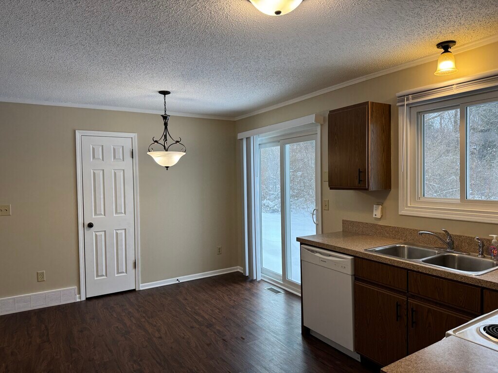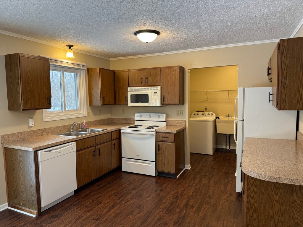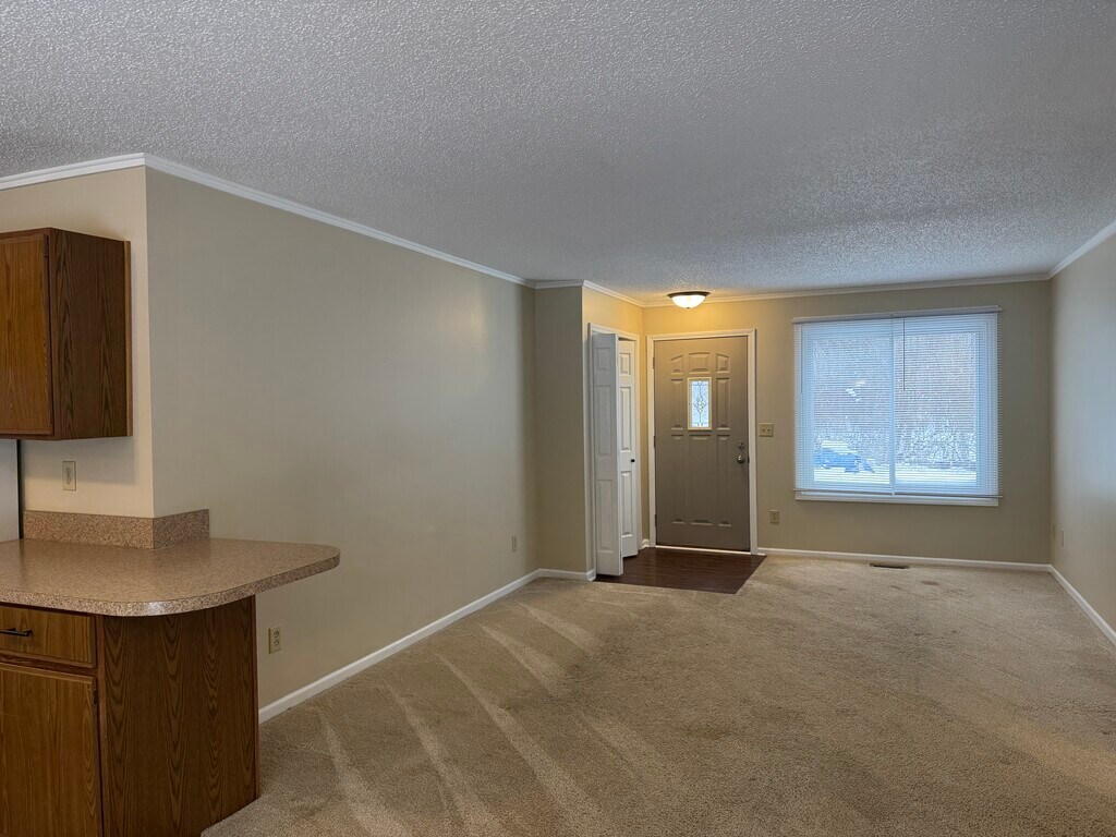 Wonderful Spring Lake duplex features: two nice size bedrooms, full bathroom with tile flooring, linen closet, front facing living room with large window, large double closet at entry plus a second second storage closet, kitchen (dishwasher, microwave, refrigerator, stove included), dining area with sliding door to rear patio and yard, laundry (washer and dryer included) and a large pantry or storage room. Freshly cleaned and painted throughout. Newer roof, furnace and air conditioning. Attached garage with private entrance and door opener. Lawn and snow services included. Water, sewer and trash services included.