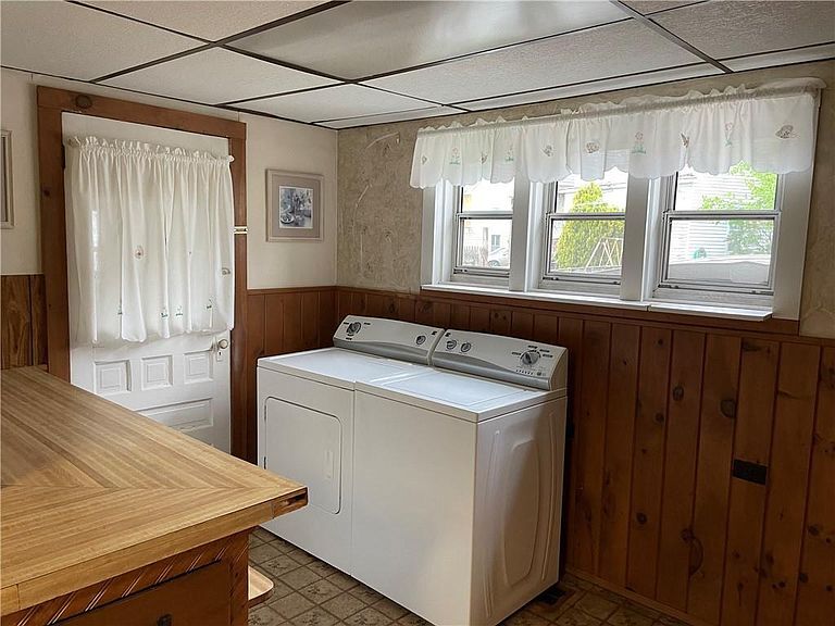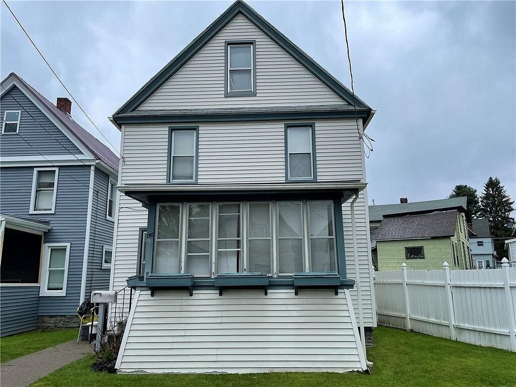 Move right into this 2-bedroom, 1 full bath home in the heart of Hornell. Bright and open first floor with good sized living room, formal dining room, kitchen and laundry area. Kitchen has included appliance package. Convenient mudroom off back of kitchen leads to fenced back yard with cement patio. Second floor has 2 good sized bedrooms and a full bath with large linen closet. Front of home features a lovely, enclosed porch and small driveway for one vehicle. Please note, the home has been re-painted in shades of gray since these photos were taken. $1200 per month.