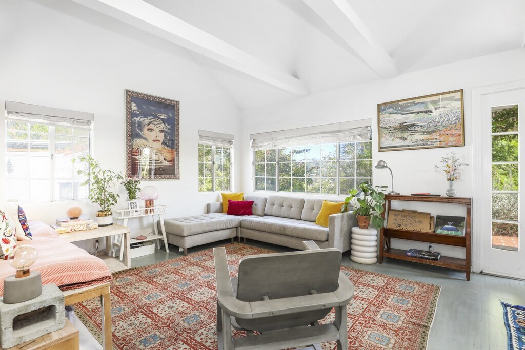 Set high above the city on a quiet cul-de-sac, this updated 1920s California Bungalow blends vintage charm with modern comfort. The home features 2 bedrooms, 2.5 baths, a 317 SF loft, and a flex/studio space with an additional half bath — totaling 1,668 SF of bright, creative living. Enjoy towering 15-foot ceilings, an open kitchen with marble countertops, and a primary suite opening onto a 368 SF deck with spectacular sunset views over the city and mountains. The property also offers double-paned windows, central air and heat, a terraced garden, storage room, and private tandem driveway parking for 2–3 cars. Across the street, the Delta Stairway provides direct access to Echo Park’s beloved Chicken Corner and neighborhood favorites like Bacetti, Valerie, Canyon Coffee & Glowing Plant Based Eater. Photos depict a furnished home but the property is being delivered unfurnished.