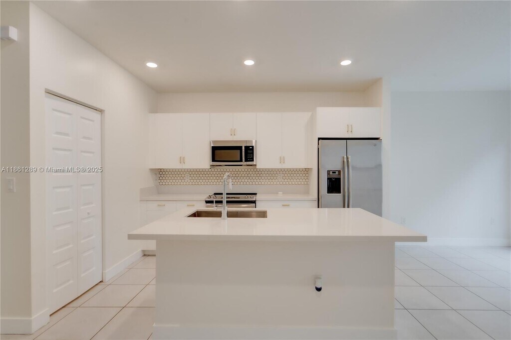 Welcome to Satori, an exclusive luxury gated community in Miami Lakes. This 3-bedroom, 2.5-bath home features a beautifully designed interior with a spacious kitchen, quartz countertops, ample cabinetry, and stainless steel appliances. Enjoy the open living and dining area with a convenient half bath downstairs. The fenced yard provides outdoor privacy, while upstairs you’ll find three bedrooms, including a primary suite with a large walk-in closet. Community amenities include a resort-style pool and spa, splash park, fitness center, and clubhouse. Located near top-rated schools, shopping, and dining—perfect for family living!