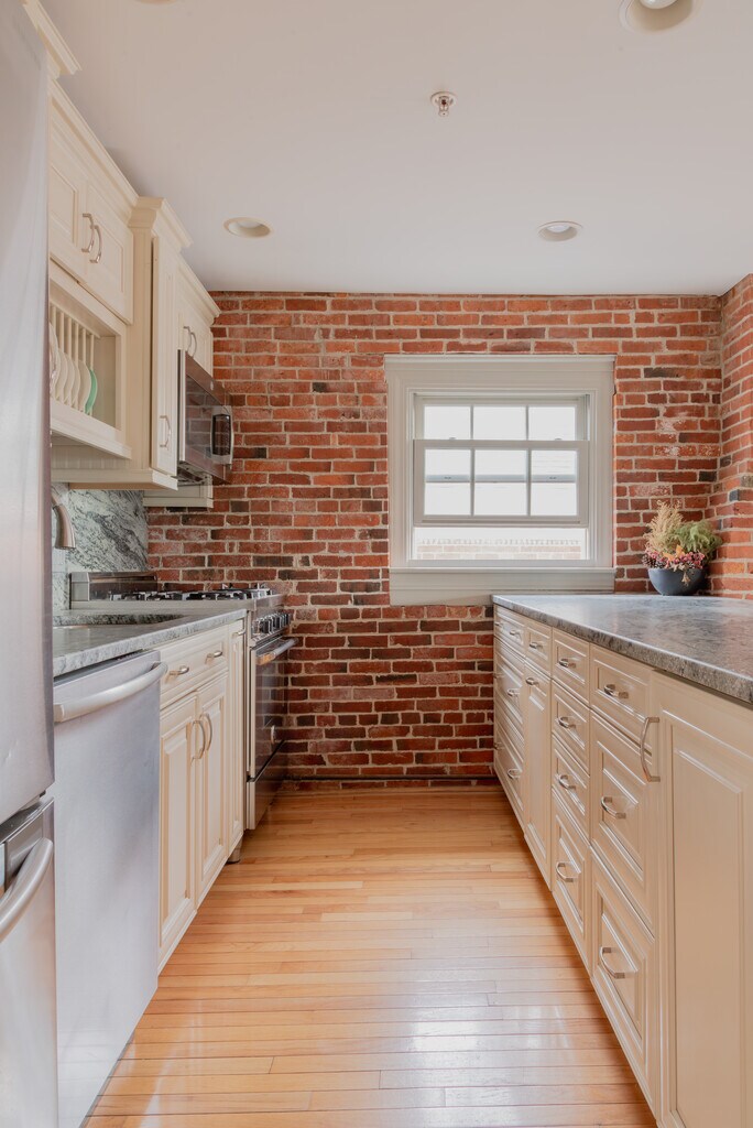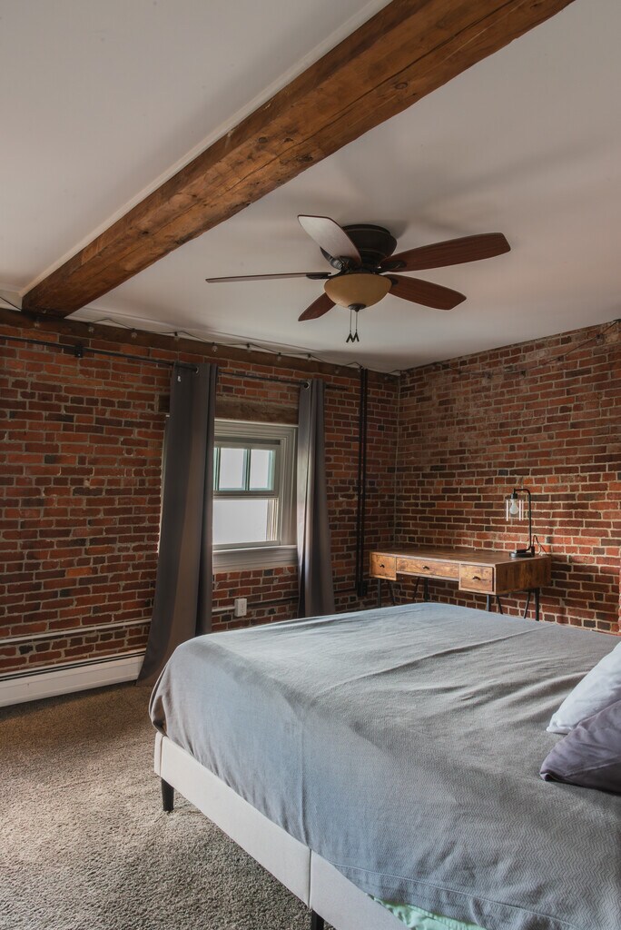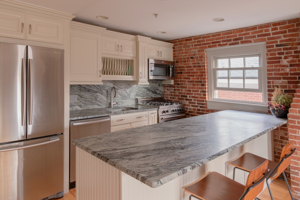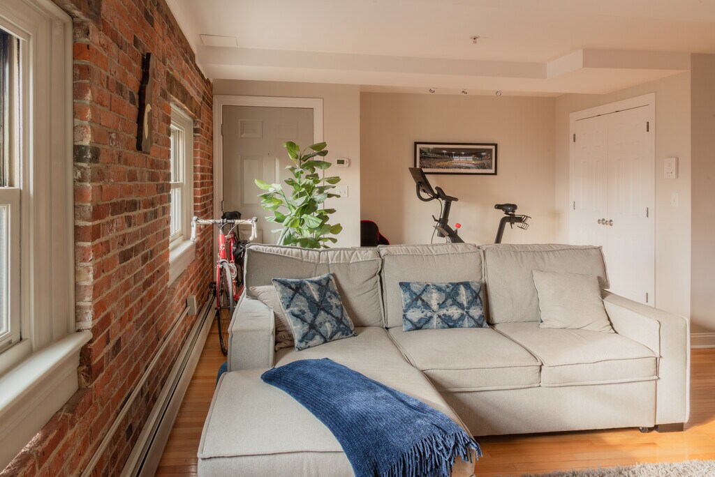Experience the best of downtown Portsmouth in this beautiful 2-bedroom loft-style condo located in the heart of the historic district. Set within a fully restored 1827 brick building, this 3rd floor unit blends original exposed beams and architectural character with modern amenities and everyday convenience. Walk to shops and restaurants within seconds, not minutes. This condo features elevator access, in-unit washer/dryer, and dedicated off-street parking a rare find downtown. The layout provides an open living space with great natural light and warm wood accents that give the home a refined yet relaxed feel. The unit is available either furnished or unfurnished, depending on your needs.