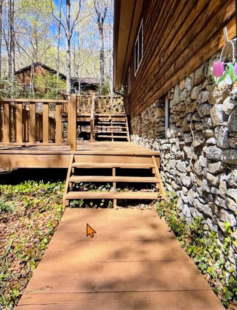 This house is located 30 minutes from downtown Asheville, 20 minutes from Hendersonville, and 15 minutes from Brevard. It sits in the woods with a large front porch and back deck. It is an open concept with a stone fireplace in the living room and a dining area off the kitchen. The kitchen and 2 baths are newly remodeled with quartz countertops (finishing now as you can see in pics). New appliances-refrigerator/ice-maker, ceramic cook top stove, microwave and dishwasher, older washer and dryer in basement if you need them. Full unfinished garage/basement runs the length of the house. Pets taken into consideration.