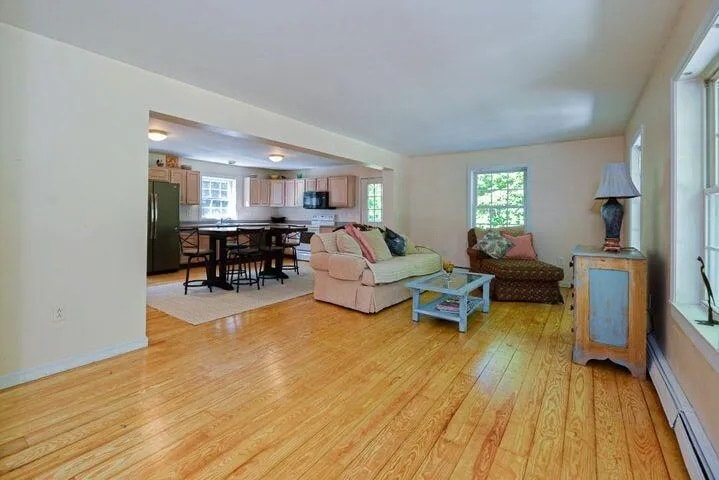 Bright and cheery two-story duplex with large rooms, plenty of storage and lots of windows. A very private lot with great outdoor space allows you to enjoy the natural environment while being close to beaches and downtown for shopping, restaurants and all that Kennebunkport has to offer. Fully appointed with 1 bedroom and 2 baths. An eat-in kitchen opens to a spacious living room. The basement is finished with a main room and 2 smaller rooms off it. There is a parking area for 2 vehicles at the house. A private grassy back yard includes a large deck. All appliances, including refrigerator, stove, dishwasher, and a washer/dryer in the unit. Great schools and easy school bus pickup is right on the street. Utilities not included. No smoking. No Pets.