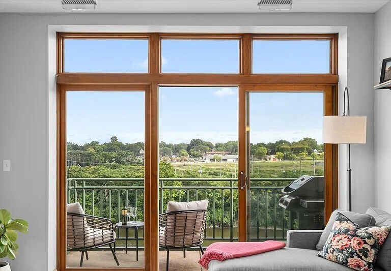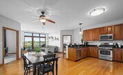 Spacious and bright 2-bedroom, 2-bathroom 4th floor condo with amazing views of the Fox River from the walkout balcony. The open floor plan and large kitchen are great for entertaining. Stainless steel appliances, breakfast bar, granite countertops, and 42'' cabinets make this kitchen a dream. Large primary bedroom with ensuite bathroom featuring double vanity and 3 large closets. In-unit utility room with washer, dryer, and more storage space. Washer, dryer, and refrigerator new in 2023. Dishwasher new in 2021. One garage parking spot with additional storage area is located below the building. Plenty of street parking is also available. Water, gas, and garbage included. Just a short walk to all that downtown Aurora has to offer. Dining, shopping, entertainment, and beautiful views are waiting for you. Close to the Paramount Theater, Rivers Edge Park, bike trails, public transportation, Metra station, and easy access to I-88.