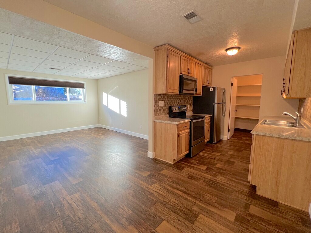 Welcome to Bosley Properties - Clark & Lewie's Villas in Great Falls, Montana! This updated lower unit apartment is located in a quiet building across from the Universities. It features a well appointed kitchen with updated cabinets, countertops, tiled back-splash and stainless steel appliances. There is hard surface luxury vinyl throughout. No more worrying what's lingering in the carpet. The windows are updated and equipped with room darkening blinds. Forced air heat and central air conditioning will keep you comfortable all year long. The building is secure and all tenants are quiet professionals. Each unit has one covered parking space with exterior outlet at no additional charge. There is a shared coin-op or app pay (payrange) laundry room with super capacity machines. Come make this place home! - NO dogs. - 1 fixed cat accepted with additional deposit and monthly rent - NON-Smoking Complex (NO smoking anywhere)!! Do not apply if you smoke or vape. - Quiet is STRICTLY enforced. NO parties of any kind, loud music, yelling at video games or any noise that might disturb your neighbors is NOT allowed or tolerated. - We do not accept vouchers. - All applicants over 18 must be able to successfully pass a credit and background check. - Gross monthly income must be 3X the rent. Tenant pays gas and electric. 1 year lease (non-negotiable) Security deposit must be paid in full prior to move-in