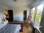 This unit is in the best neighborhood in Spokane - Peaceful Valley. This neighborhood on the river has a very laid back feeling, but is less than a 10 minute walk to downtown, where you can find plenty of shops, parks, restaurants, cafes, breweries, concert venues, and plenty of other fun to explore. We are across the street from a small park and basketball and soccer courts, This unit is a mother-in-law apartment with its own entrance and completely stand alone. It is cozy, old Victorian style with stain glass windows and plenty of natural light. Surrounded by trees. There are two bedrooms in the unit, a kitchenette and a full bathroom. The primary bedroom has a queen bed, a walk in closet with built in dresser and all the basic bedroom amenities. The second bedroom is set up as a living space with a futon, a stressless chair, and a tv. The kitchenette is equipped with an apartment-sized fridge (with freezer), a hot plate, an air fryer, a sink, a table, and a microwave. There is a front porch with rocking chairs for the upstairs unit. The washer/dryer is in our downstairs unit, and you are welcome to use it. Happy to answer any questions!