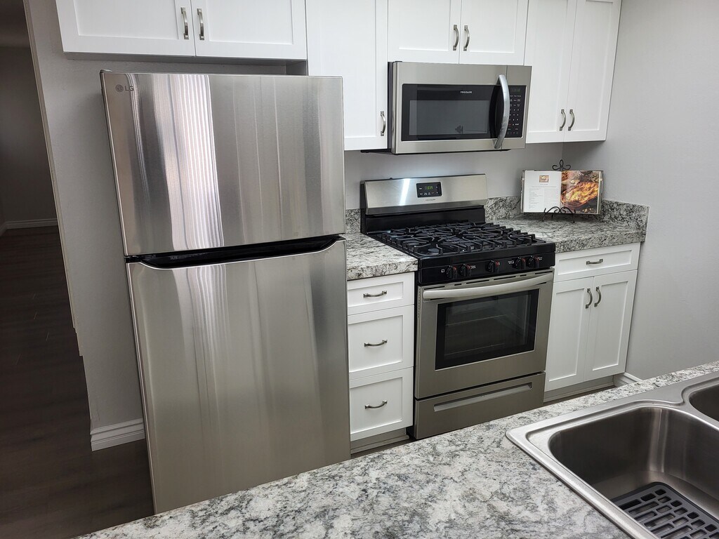Ocean Breeze Park View Here's your chance to come home to one of Surf City's newly remodeled light and airy homes. Request video tour. This 1st floor unit features a gourmet chef kitchen with stainless steel appliances, white shaker cabinetry and granite countertops. Hugh master bedroom with 2 large closets. Bathrooms have granite countertops, white shaker cabinetry. Unit has vinyl wood floor planks throughout. One of the larger 2 bedroom units in the area. Private patio, 2 assigned car spaces, one outside and one space inside garage. Great location near dining, entertainment, shopping, schools and freeways in a highly desirable area. Compare the amenities before you commit. Pride of ownership. Owner managed 4-plex. Water and Trash included. Non-smoking. Dog friendly. Monthly gross income of 3X rent and credit score 680 required. We do credit and background checks. Move-in special. 11 month lease.