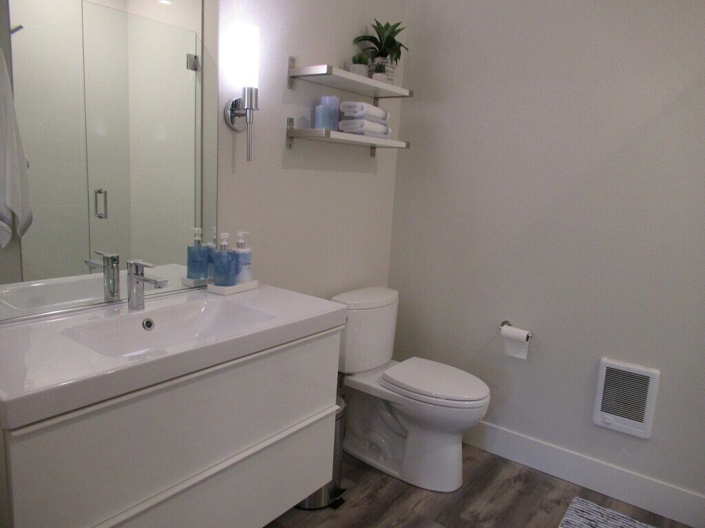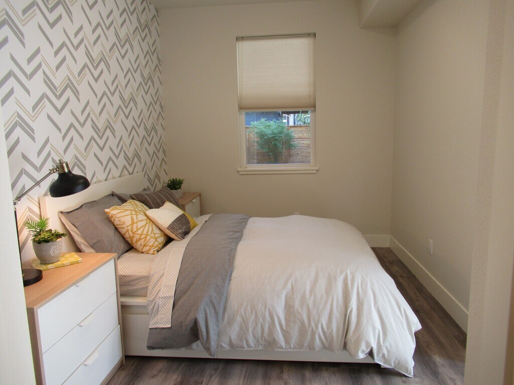 Walk to MAX • Modern 1BR ADU • Patio • Washer/Dryer • Flat-Rate Utilities Urban 1 bedroom / 1 bathroom ADU located in Portland’s desirable Overlook neighborhood. Just ½ block west of N Interstate Ave between Killingsworth and Alberta, and a short walk from the MAX station for an easy commute to downtown. Walk or bike to nearby employers and neighborhood amenities including Adidas campus, New Seasons Market, local shops, food carts, cafés, and restaurants. Home Features: -Quartz countertops and tile backsplash -Stainless steel appliances (refrigerator, dishwasher, microwave, glass-top range/oven, disposal) -Modern bathroom with tile shower, frameless shower door and wall mounted vanity -Full-size washer and dryer in unit -2-full size closets in the bedroom -9-ft ceilings -Ductless heat pump with heating & A/C -Private patio space -Shared fenced yard Photos and floor plan shown are of the furnished unit next door with the same layout and identical interior (mirror image). Flat-rate utilities: $120/month for electricity, water, sewer, and garbage Wi-Fi: Free shared Wi-Fi available No smoking. No pets allowed. Designed for single occupancy.