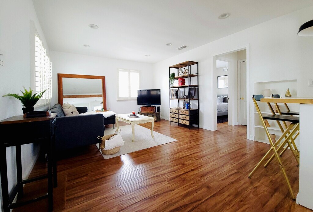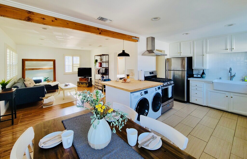 Newly renovated single family home with 3 bedrooms/1 bath, 1000+ square feet in a quite street and nice neighborhood. Two fully furnished bedrooms with modern design and fixtures ( king bed and queen bed) and third bedroom converted into a study. Fully stocked bathroom with towels and toiletries. Open concept kitchen and living room with smart TV and high speed internet. Kitchen is spacious, fully equipped with cookware and appliances, with plenty of counter space, including an island and bar seating. Indoor laundry for convenience. Third bedroom located in the back of the house converted into a work space/study is furnished with a smart desk and a comfy couch. The private outside deck area with outdoor furniture and hanging lights can be accessed through the study or the side of the house. Plenty of natural light and breeze flowing throughout the home. A perfect place for a home away from a home. Easy access to major freeways, LAX airport, hospitals, shopping and dining. Located in close proximity to surrounding beaches (Redondo Beach, Torrance Beach Hermosa Beach, and Manhattan Beach).