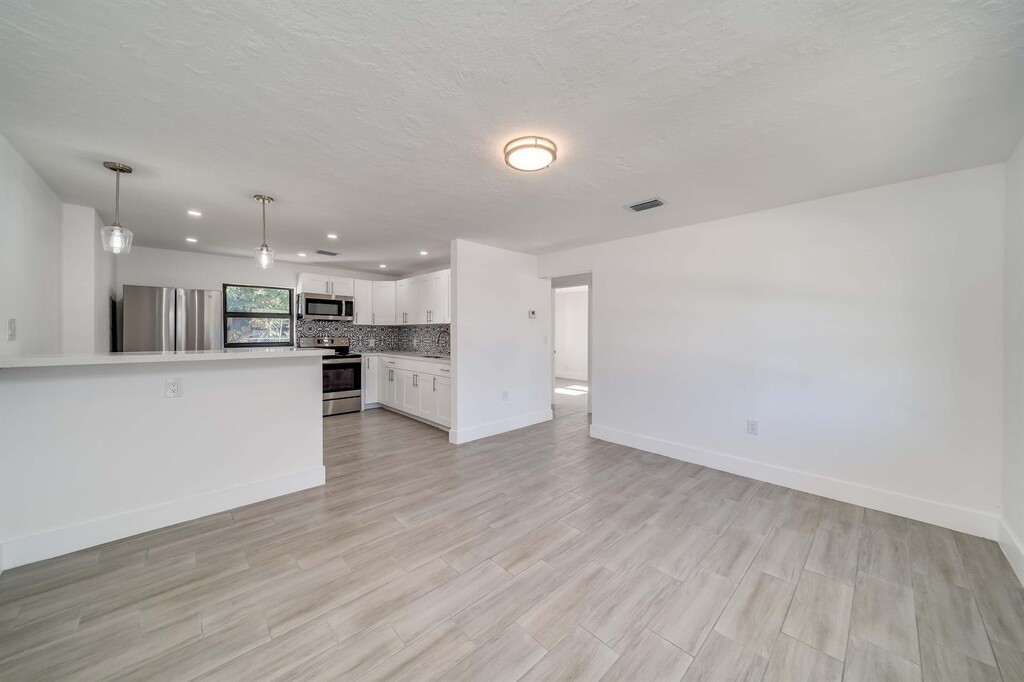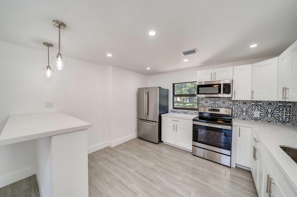Gorgeous Hollywood Beach residence offering three bedrooms and two bathrooms, adorned with lavish, modern enhancements. The property boasts fully enclosed private fencing for added security and privacy. Inside, the kitchen showcases stunning stainless steel appliances and exquisite soft-close shaker-style cabinetry. This home includes essential kitchen appliances, a washer/dryer, and ample parking space. Step outside to appreciate the delightful landscaping and the protection provided by large-impact windows and doors throughout.Conveniently situated, it's just a short 4-minute drive east to the beach and close to various stores and the I-95. This home includes essential kitchen appliances, a washer/dryer, and ample parking space.
