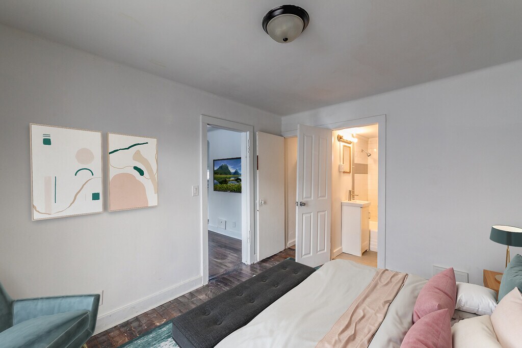 A beautifully renovated one bedroom apartment in a small quiet building located close to bars, showing, and restaurants close to freeway access. * Hardwood floors throughout * Covered parking included * Large windows bring in light and air * Modern finishes